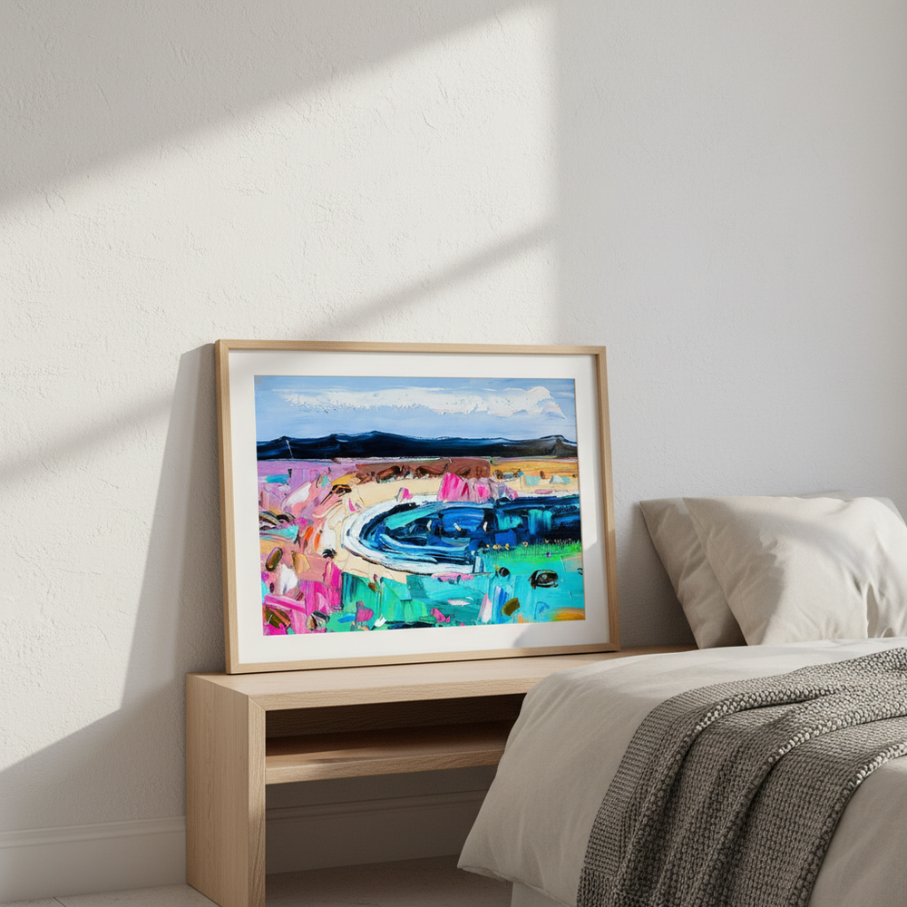 Angieโs passion for art began early, inspired by her grandfather, a landscape oil painter. She creates expressive, joyful works that focus on texture, colour, and shape
