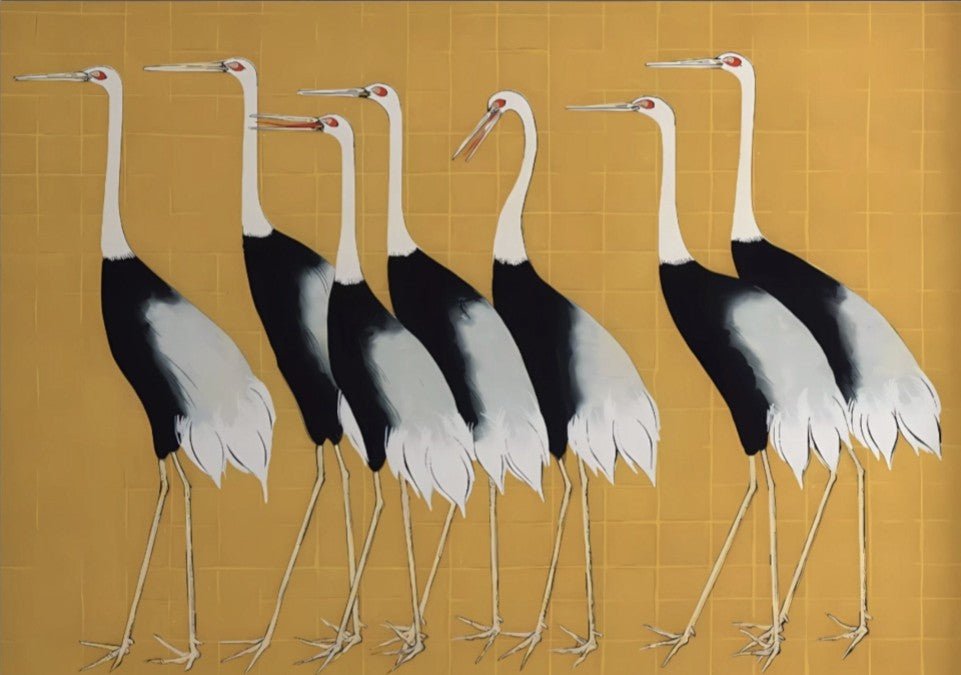 Add a touch of elegance and sophistication to your home with the Ogata Korin Flock of Japanese Red Crown Cranes Wall Art. Each piece captures the beauty of the artwork's intricate details and traditional Japanese design. Displayed together, the flock of cranes symbolizes luck, longevity, and prosperity. Elevate your space with this stunning and meaningful piece.