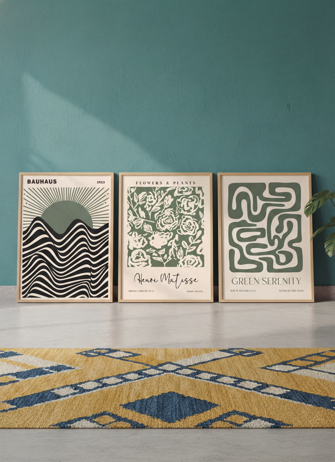 Enhance the ambiance of your living space with our New Green Trio Mix Wall Prints by Bauhaus & Matisse. This set of three framed posters will effortlessly transform any room into a stylish haven. The combination of vibrant green hues and modern design will add a touch of elegance to your walls, creating a captivating focal point. Whether you choose to display them together or separately, these high-quality prints are sure to impress. Elevate your home decor with our stunning Green Trio Mix Wall Prints today.