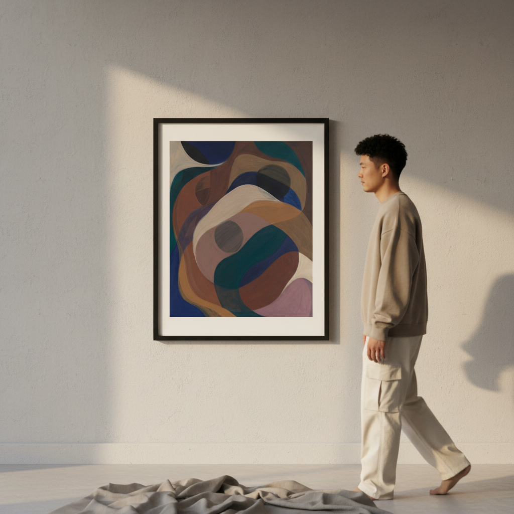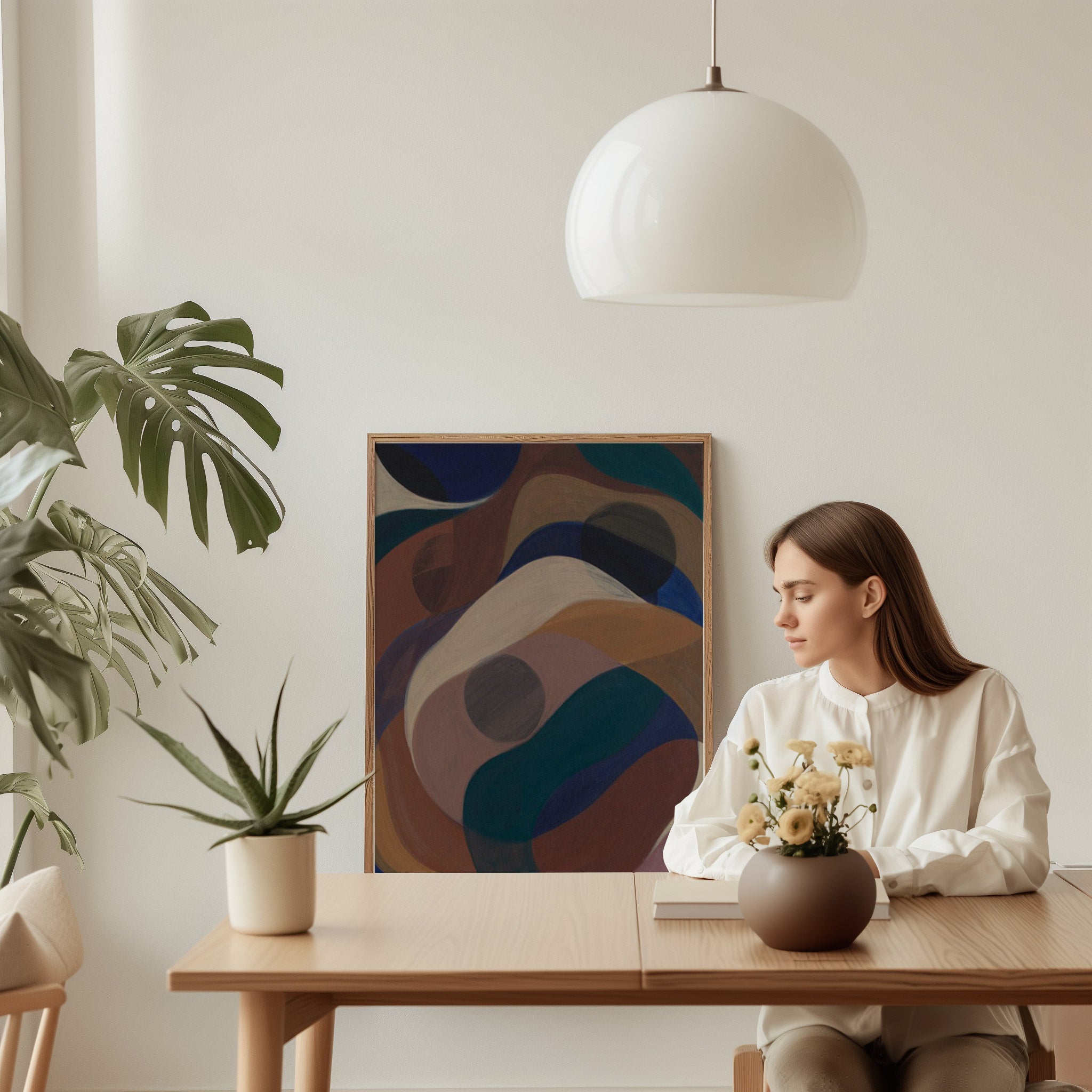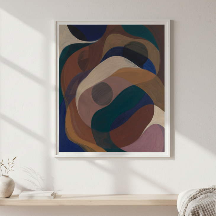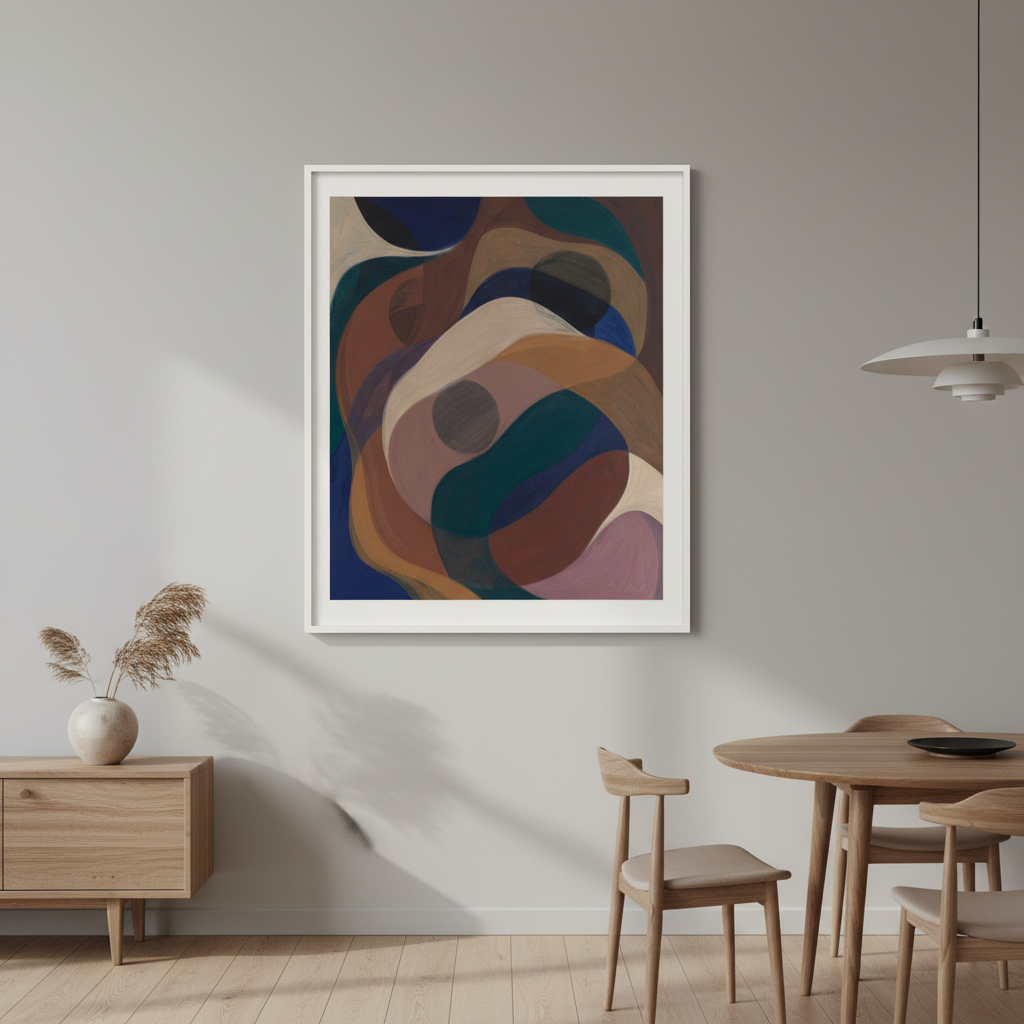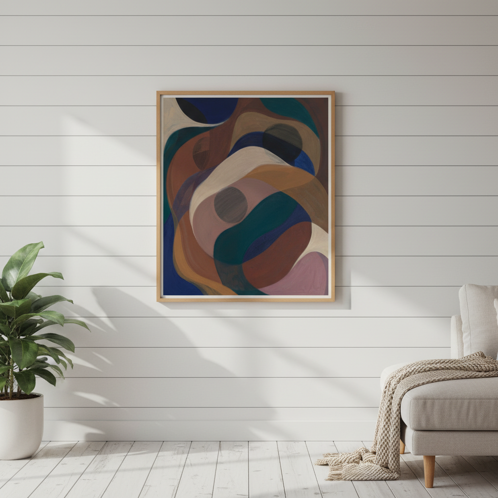 Discover the captivating allure of abstract expressionism with this striking artwork by Berit Mongensen Lopez. Swirling colors dance across a dark canvas, creating dynamic movement and visual intrigue. The composition draws the eye through layers of bold hues, inviting contemplation and conversation. Perfect for contemporary interiors seeking an artistic focal point, this piece brings sophistication and creative energy to any space. An ideal choice for collectors who appreciate modern art with emotional depth and visual complexity.