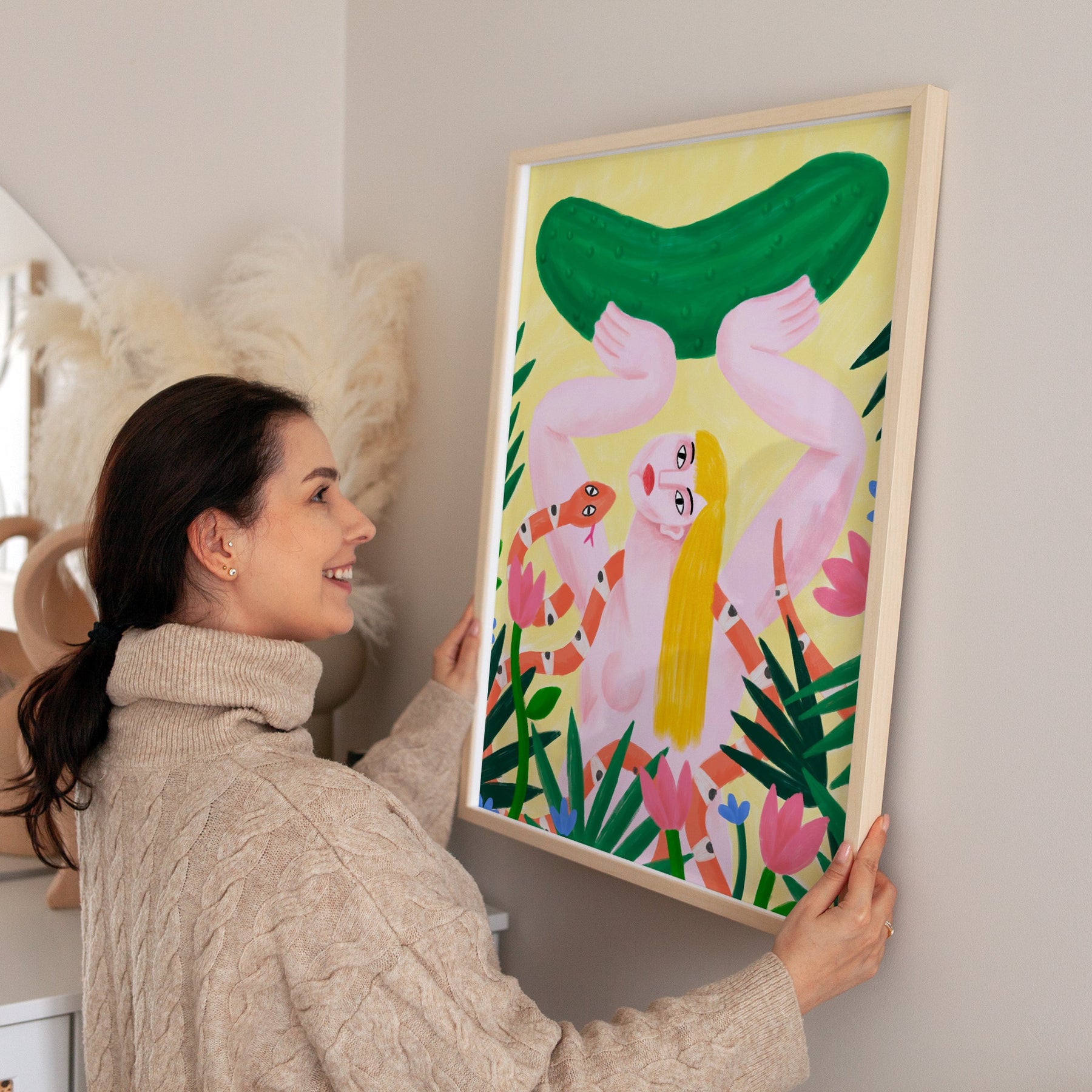 Elevate your living space with "Pickle" by Cedric Pierre-Bez, a sophisticated poster that adds a touch of artistic flair to any room. Perfect for the living room, kitchen, or bedroom, this piece blends contemporary design with subtle charm, creating an inviting atmosphere that complements your refined taste.