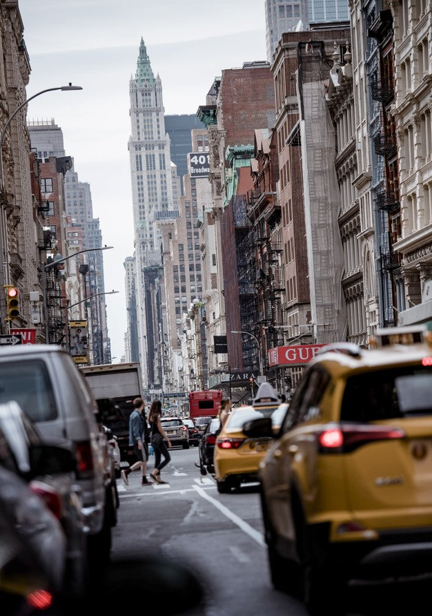 Broadway SOHO by Cordula Schaefer captures the vibrant energy of Manhattan's iconic streets. This striking artwork depicts a bustling urban landscape dominated by towering architecture and a distinctive yellow taxi, embodying the dynamic spirit of New York City. Cordula Schafer's expert composition balances the geometric precision of the cityscape with the warmth of the cab's colour, creating a compelling focal point. Perfect for those who appreciate metropolitan aesthetics and contemporary urban art, this piece brings authentic New York character to any interior space.