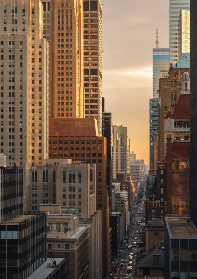 Capture the dynamic energy of urban architecture with this striking cityscape artwork by Cordula Schaefer. Towering buildings pierce a luminous sunset sky, their silhouettes rendered in bold, expressive strokes that convey movement and atmosphere. The interplay of warm golden hues against deepening shadows creates dramatic depth, transforming an everyday urban scene into a compelling visual narrative. Perfect for contemporary interiors, this piece brings sophistication and visual interest to any space while celebrating the raw beauty of metropolitan landscapes.