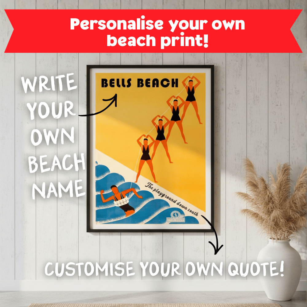 Create a one-of-a-kind piece of wall art with our Custom Personalised Beach Print, a timeless vintage-inspired artwork designed to celebrate your favourite coastal destination.