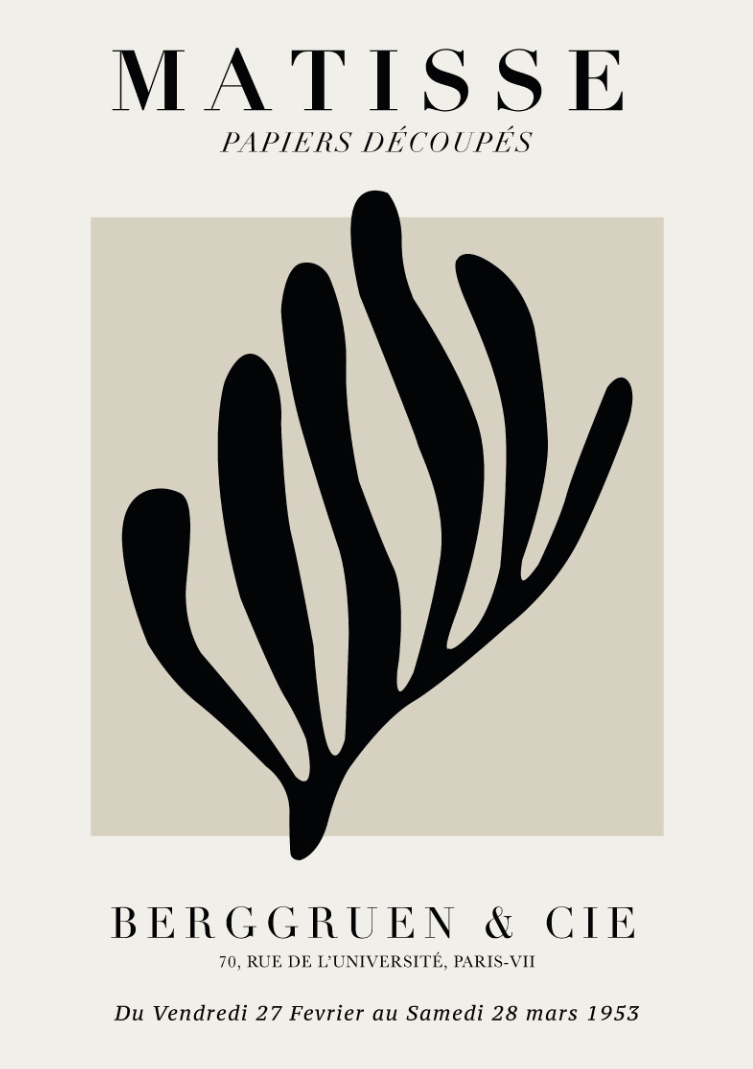 Introducing the captivating 'Matisse - Berggruen & Cie' wall art prints, inspired by Henri Matisse. This stunning piece combines Klee and Picasso elements, resulting in a mesmerising black and white blend. Perfect for adding sophistication and creativity to any space, it's sure to be a conversation starter. Elevate your home decor with the timeless beauty of the Black Coral by Matisse.