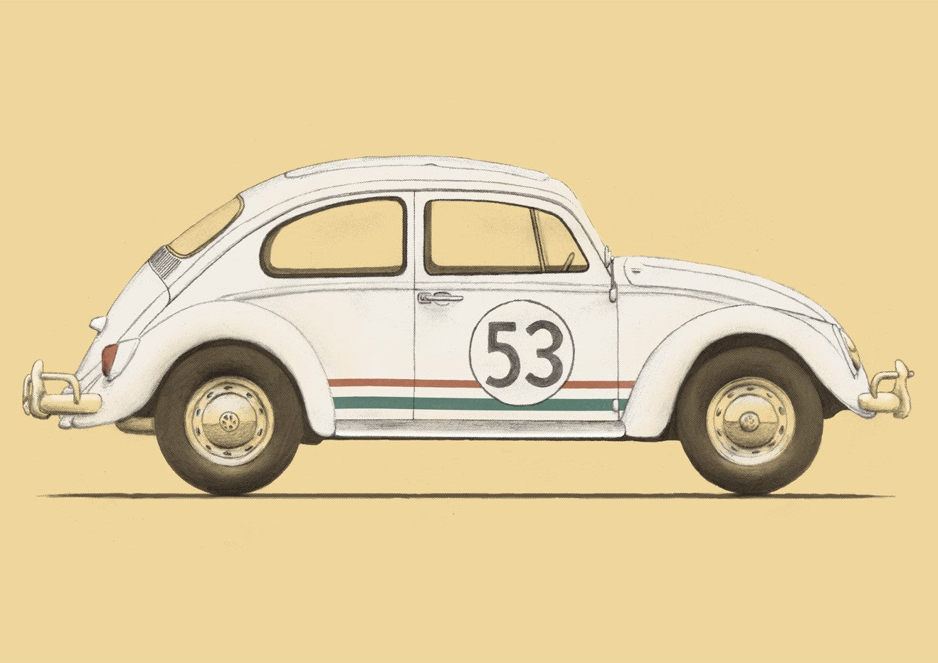 This charming vintage Volkswagen Beetle artwork captures the iconic car in all its retro glory, complete with the lucky number 53 emblazoned across its side. Set against a warm, neutral beige backdrop, the design evokes nostalgic vibes and timeless automotive charm. Perfect for adding a dash of whimsy and character to any room, this piece celebrates the beloved Bug that's stolen hearts for generations. A delightful choice for VW enthusiasts, vintage lovers, and anyone who appreciates a bit of playful pop culture flair on their walls.