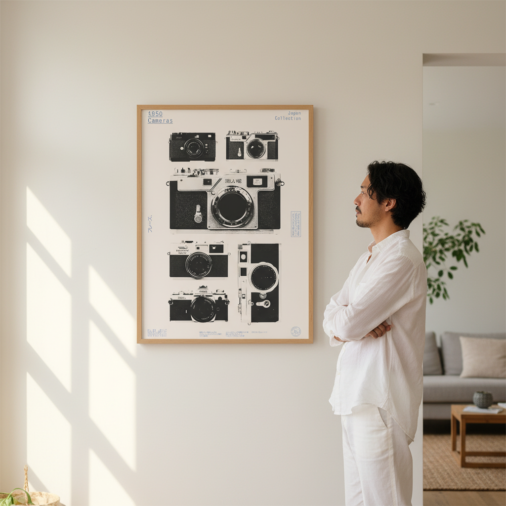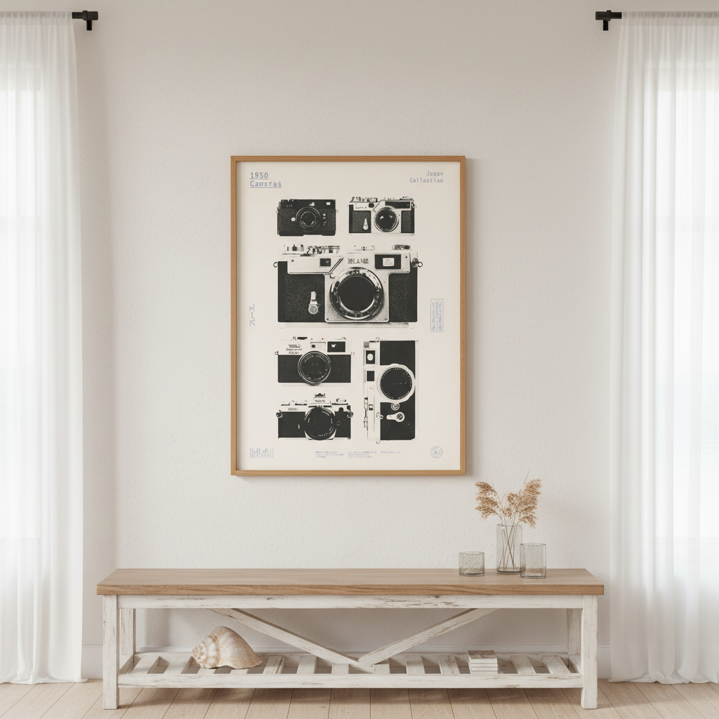 Step back in time with this captivating collection of 1950s Japanese cameras by Florent Bodart. Discover the mechanical brilliance and timeless design of vintage photography's golden era, featuring iconic models that shaped how we capture moments. Each camera tells a story of precision engineering and artistic vision from Japan's post-war renaissance. Perfect for collectors, photography enthusiasts, and anyone who appreciates the charm of analog craftsmanship. Relive the magic of film photography with these beautifully preserved treasures that prove some things only get better with age.