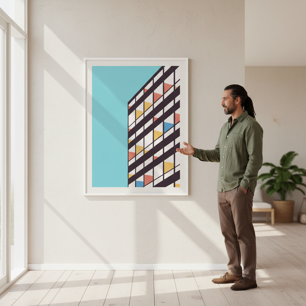 Transform your space with this vibrant geometric masterpiece featuring bold, colorful triangles dancing across a striking blue canvas. Inspired by modernist design principles, this eye-catching print brings dynamic energy and contemporary flair to any room. Perfect for adding personality to living spaces, bedrooms, or creative studios, it's a conversation starter that celebrates colour and form. Whether you're a design enthusiast or simply love bold visual statements, this playful composition delivers instant impact and timeless appeal.