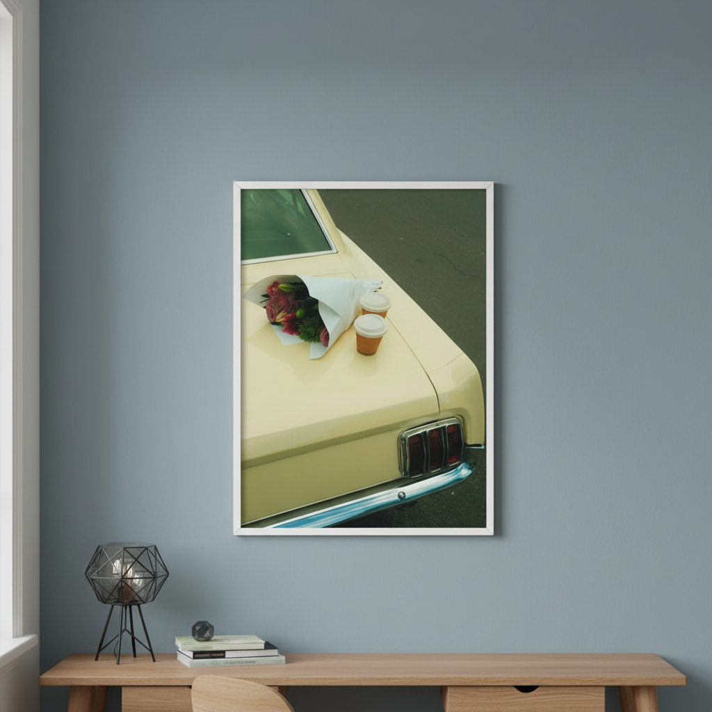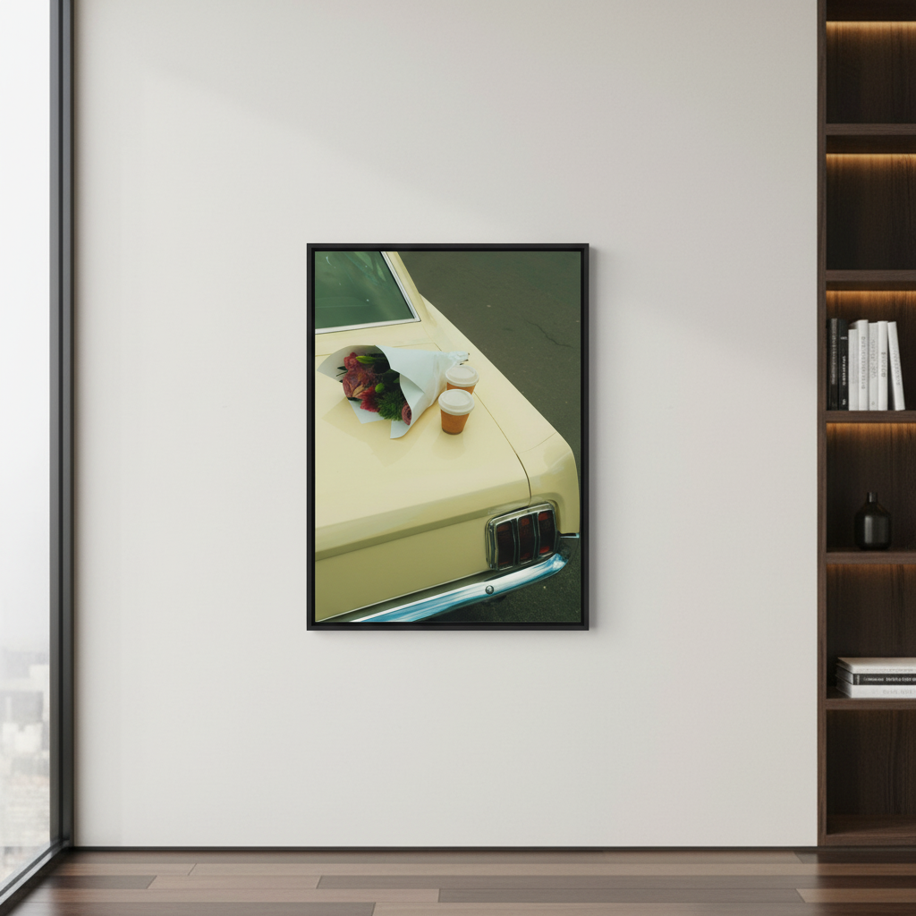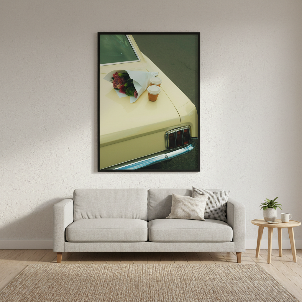 Celebrate automotive passion with this striking photograph by Gelica Peralta. Featuring vibrant flowers and delicate containers artfully arranged on a vintage car hood, this piece captures the intersection of mechanical heritage and natural beauty. Perfect for enthusiasts who appreciate both classic vehicles and refined aesthetics, it brings character and conversation to any space. An ideal choice for garages, showrooms, or living areas where style meets automotive soul.