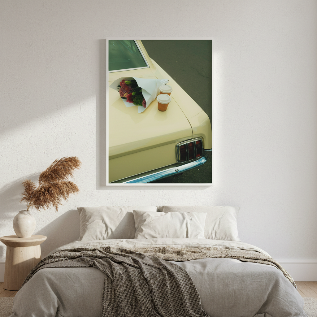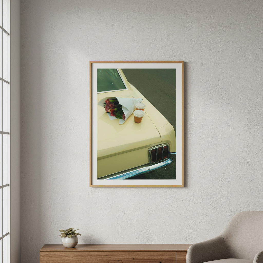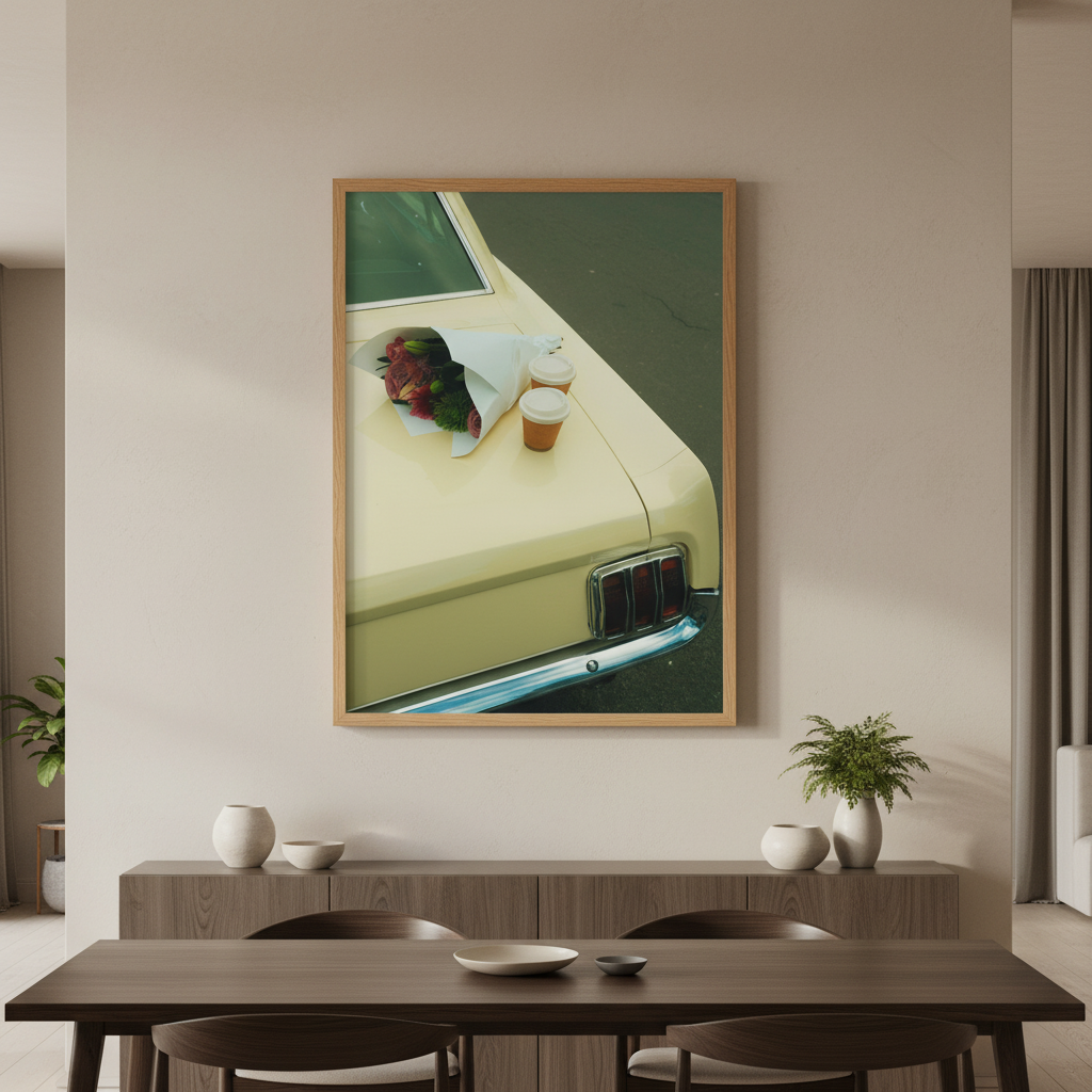 Celebrate automotive passion with this striking photograph by Gelica Peralta. Featuring vibrant flowers and delicate containers artfully arranged on a vintage car hood, this piece captures the intersection of mechanical heritage and natural beauty. Perfect for enthusiasts who appreciate both classic vehicles and refined aesthetics, it brings character and conversation to any space. An ideal choice for garages, showrooms, or living areas where style meets automotive soul.