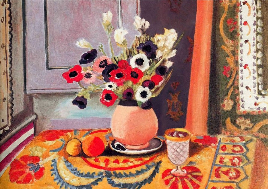 Enhance your living space with the exquisite beauty of "Still Life With Flowers" by Henri Matisse Wall Art. This captivating painting features a vibrant arrangement of flowers and fruit on a table, adding a touch of elegance and sophistication to any room.