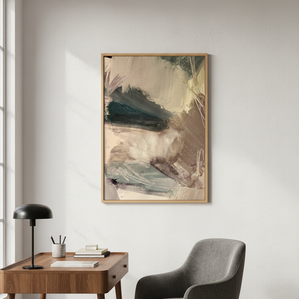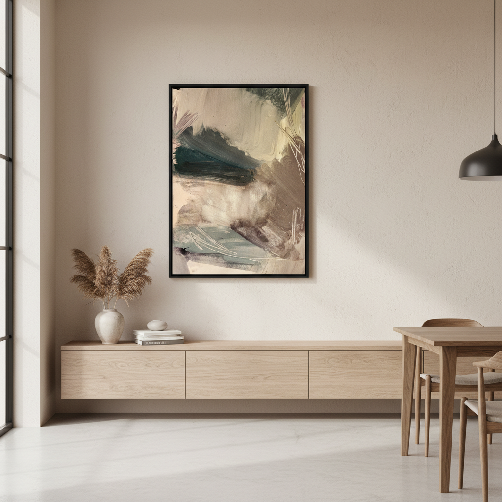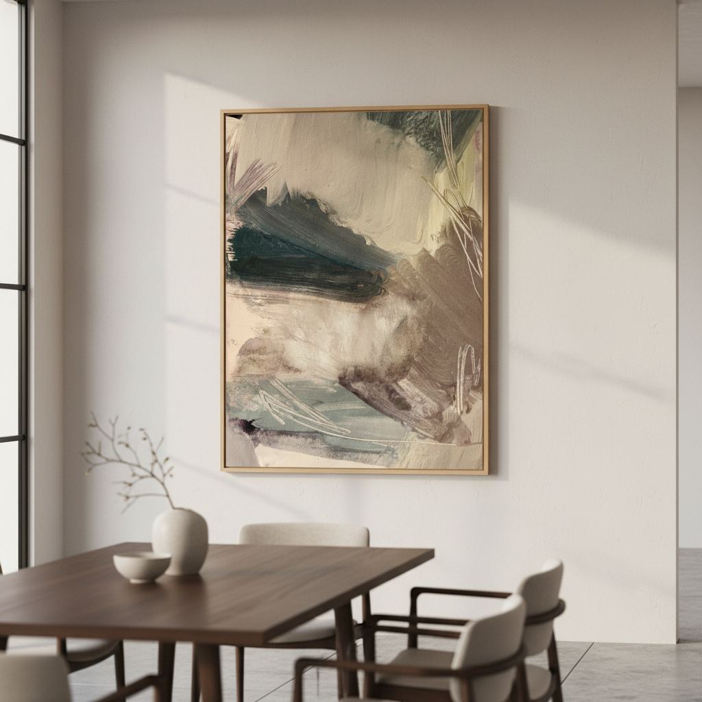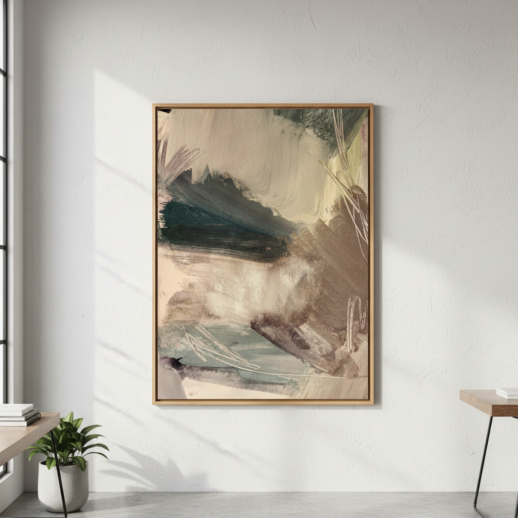 Continental by Hope Bainbridge is a captivating abstract artwork that celebrates the beauty of spontaneous creativity. Layered with dynamic brush strokes in soothing neutrals—creams, greys, and warm taupes—this piece brings sophisticated movement to any space. Perfect for those who appreciate art that whispers rather than shouts, it's an invitation to discover something new with every glance. A conversation starter that plays well with virtually any décor style.