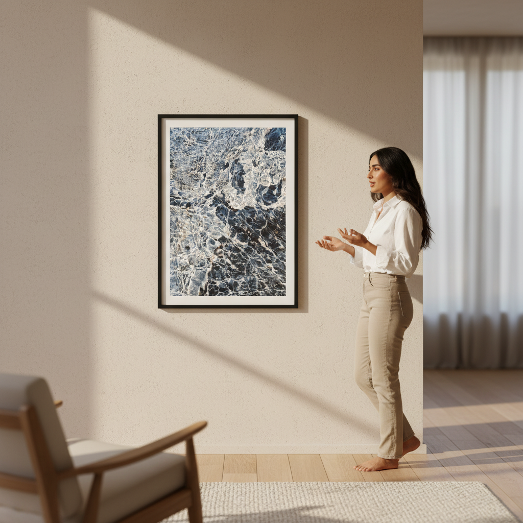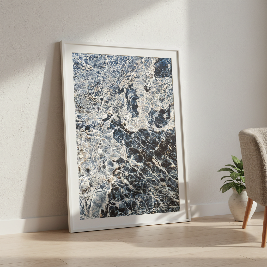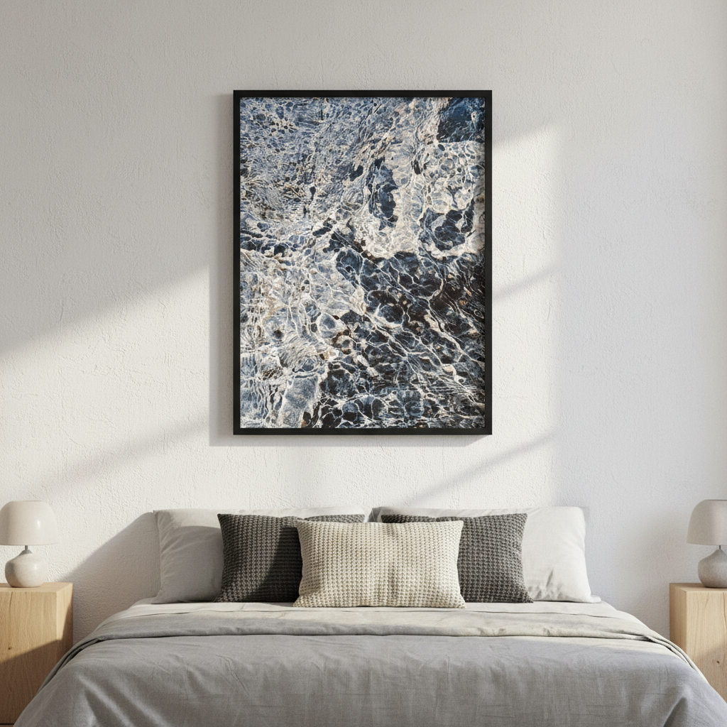 Ripples in Time captures the mesmerizing dance of light and shadow across weathered stone. This stunning artwork by Hope Bainbridge reveals nature's intricate handiwork—swirling patterns in charcoal and slate that seem to shift with every glance. Perfect for adding depth and visual intrigue to any room, this piece invites you to pause and discover something new each time you look. A conversation starter that brings timeless elegance with a touch of mystery to your walls.