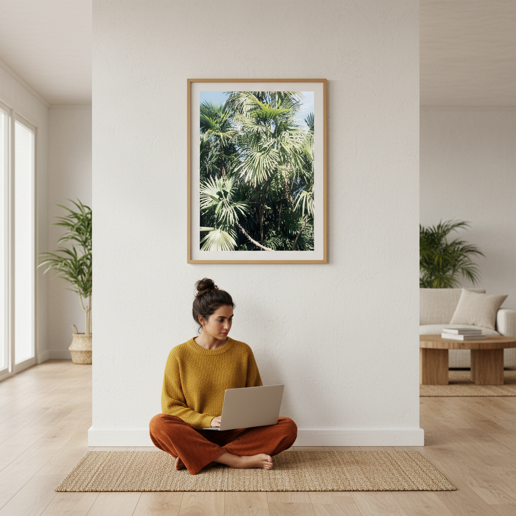 Escape to paradise with this stunning tropical palm tree by Hope Bainbridge. Swaying palms frame a brilliant blue sky, transporting you straight to your own slice of island bliss. Perfect for creating a vacation vibe in any room, this piece brings warmth, relaxation, and a splash of colour to your walls. Whether you're dreaming of sandy beaches or simply want to brighten your space, this tropical treasure delivers instant wanderlust and good vibes.