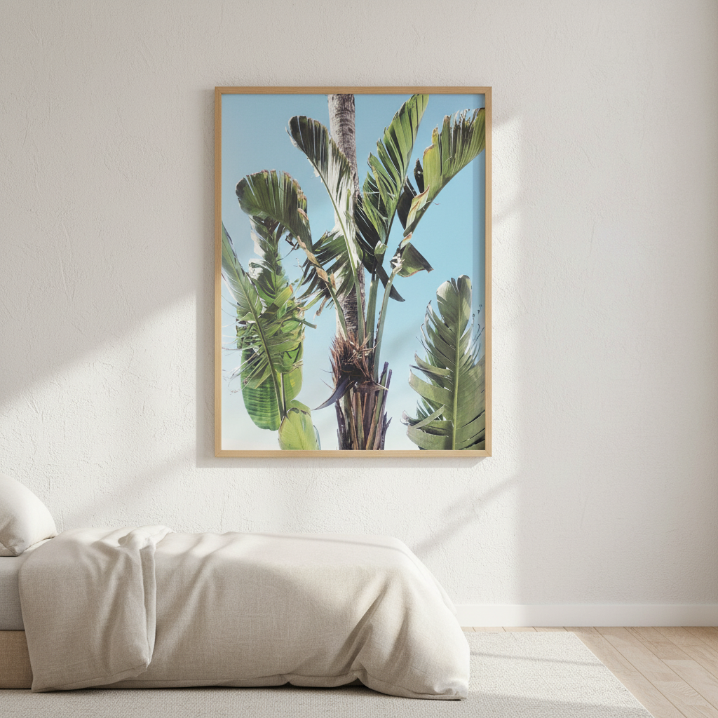 Transform your space into a lush tropical paradise with this stunning image by Hope Bainbridge. Featuring vibrant oversized green foliage set against a crisp blue sky, this piece brings the refreshing energy of nature indoors. Perfect for adding a pop of botanical charm to any room, it's an instant mood-lifter that celebrates the beauty of tropical landscapes. Ideal for plant lovers and nature enthusiasts seeking that perfect wall statement.