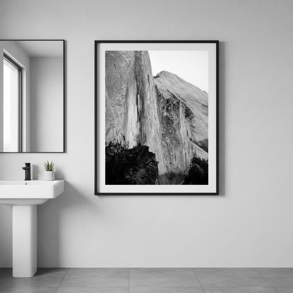 Capture the drama of nature's architecture with this striking black and white mountain study. Towering peaks meet a perfectly flat summit in this moody landscape photograph, where bold contrasts and minimalist tones create an almost sculptural effect. Perfect for adding a touch of geological grandeur to any space—whether you're a nature lover, photography enthusiast, or someone who appreciates the raw beauty of untamed wilderness. A conversation starter that whispers of adventure without shouting about it.