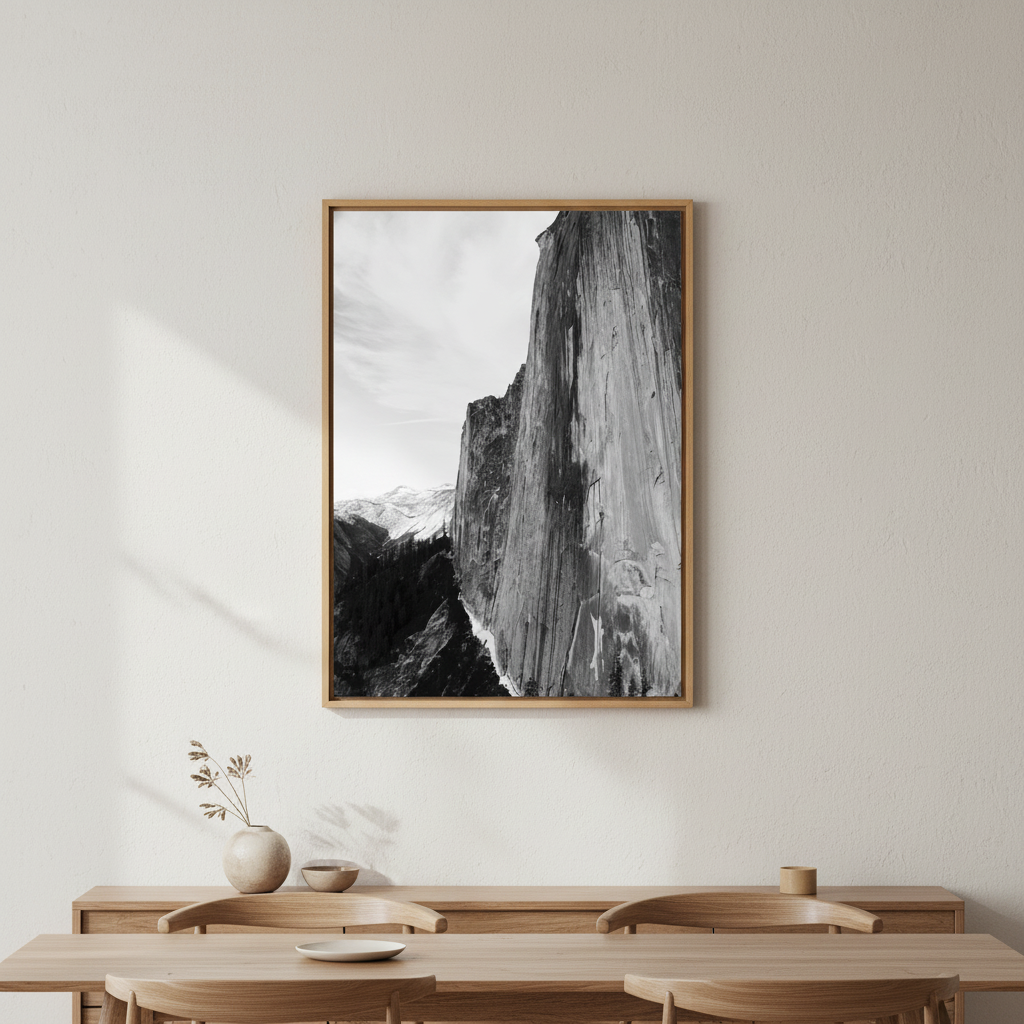 Capture the raw drama of nature with this striking black and white photograph of a towering mountain peak. Hope Bainbridge's "Yosemite Summit" showcases jagged, weathered rock formations in stunning monochrome detail—perfect for adding a touch of wild sophistication to any space. Whether you're a nature lover or an art enthusiast, this moody landscape brings timeless elegance and adventurous spirit straight to your walls. A conversation starter that proves sometimes the best views come in shades of grey.