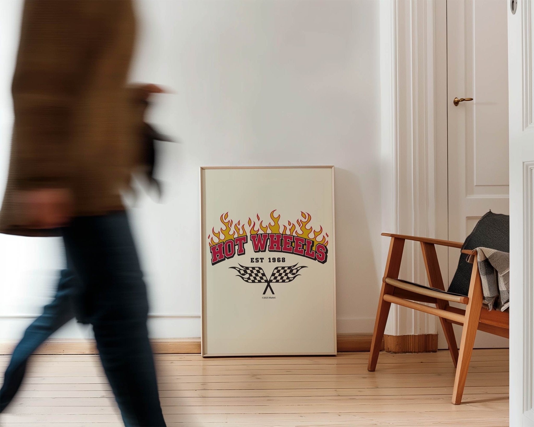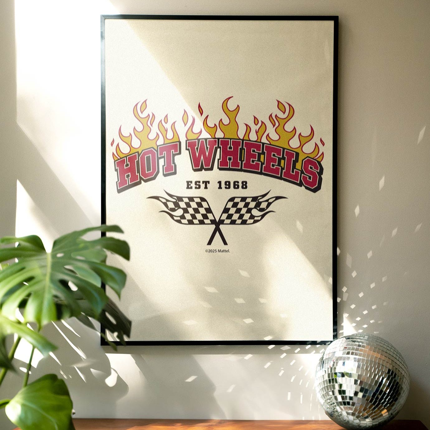 Rev up your space with the Hot Wheels Est 1968 Flaming Flag Print! This retro vintage wall art features the iconic flaming logo and checkered flags, perfect for adding a playful, nostalgic vibe to any garage or game room. Celebrate the thrill of speed and style with a design that captures the spirit of Hot Wheels’ legendary racing heritage.