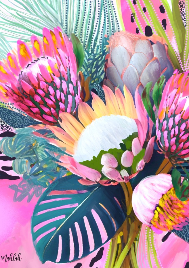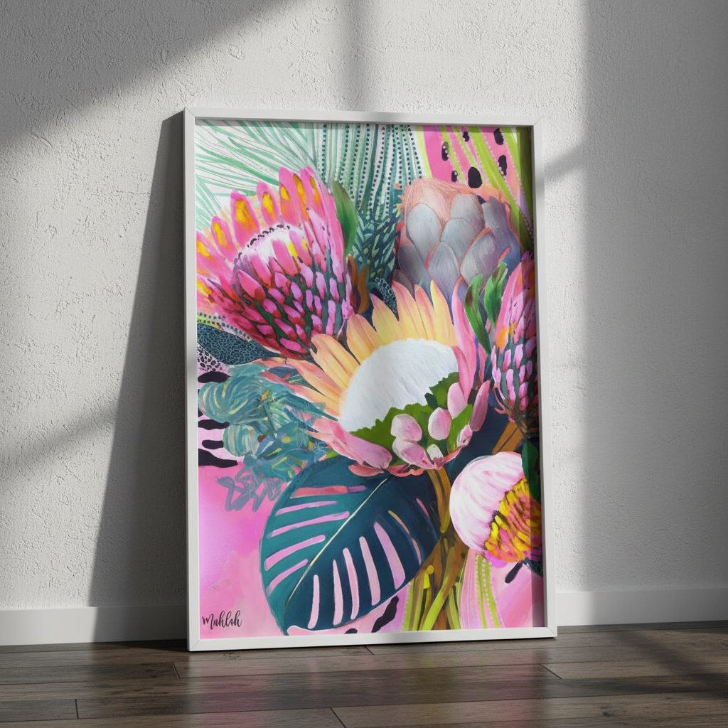 Floral Fiesta brings vibrant tropical energy to any space with its dynamic blend of pink, green, and blue florals. This Inkheart Designs creation features a carefully curated palette that balances warm and cool tones, making it versatile enough to complement both contemporary and eclectic interiors. The intricate flower pattern adds visual depth and movement, transforming walls into a botanical focal point. Perfect for creating an inviting atmosphere in bedrooms, living areas, or creative spaces where colour and personality matter.