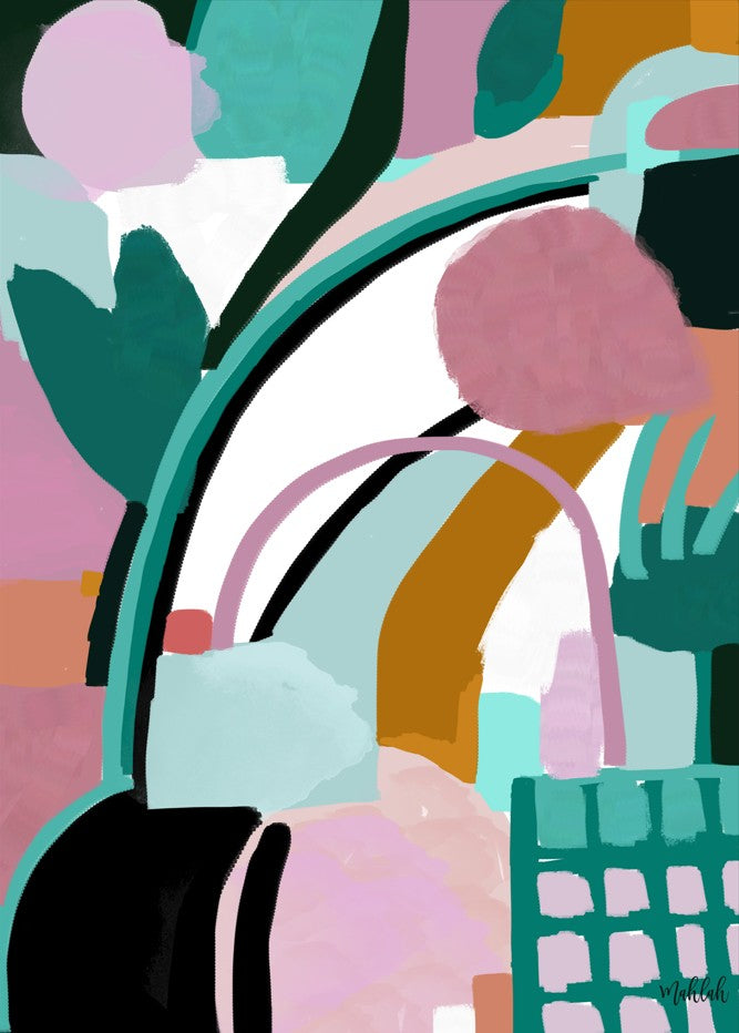 Offbeat Abstract by Inkheart Designs celebrates contemporary art through dynamic composition and vibrant colour interplay. This striking piece features an eclectic arrangement of geometric forms and intricate patterns that command visual attention whilst maintaining sophisticated balance. The layered design creates depth and movement, making it an ideal focal point for modern interiors seeking personality and artistic edge. Perfect for collectors who appreciate unconventional aesthetics and bold creative expression.