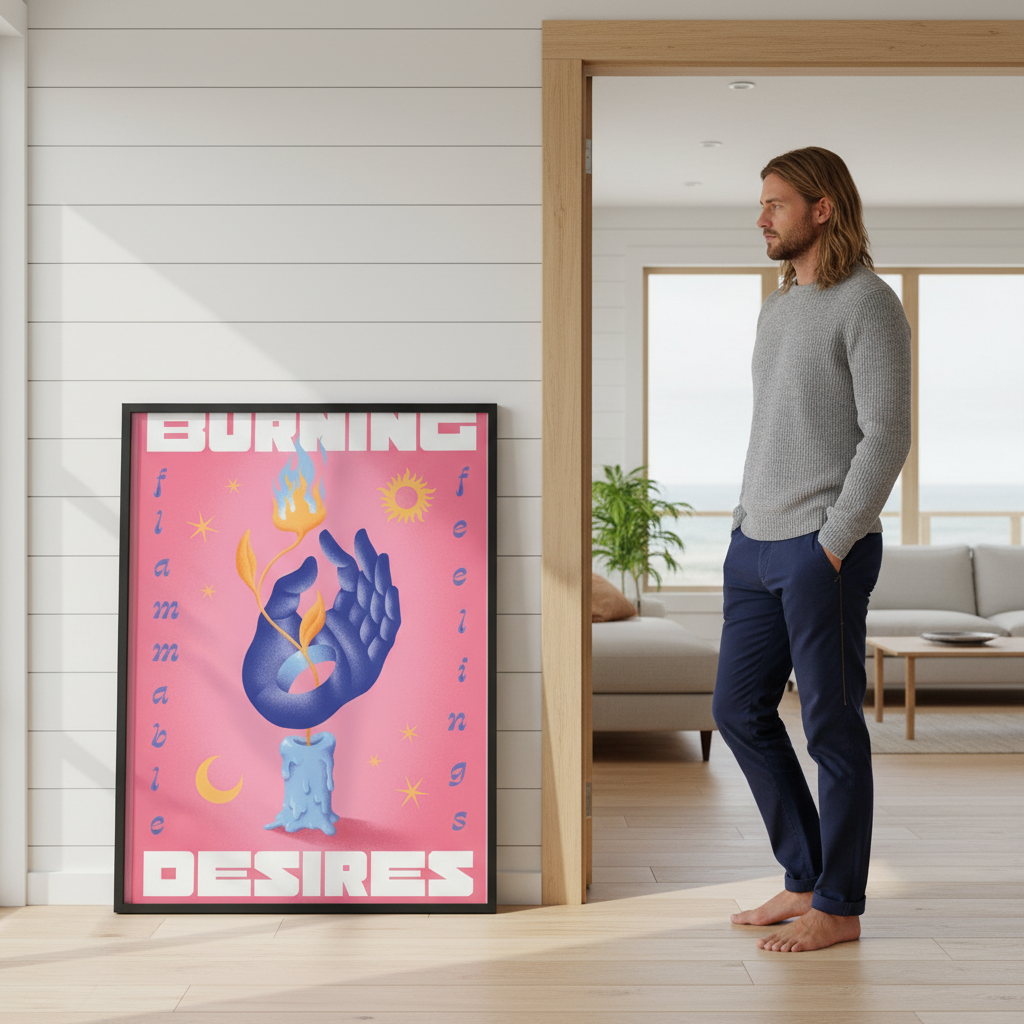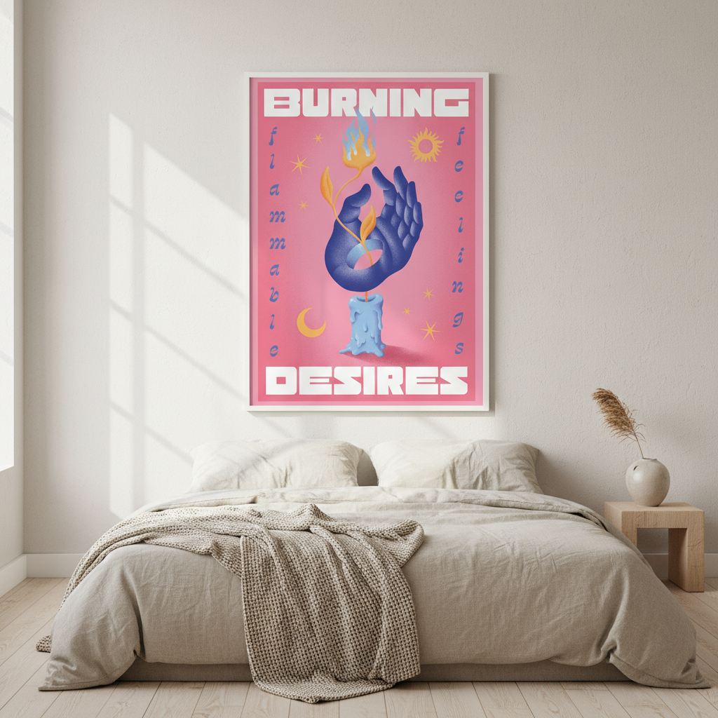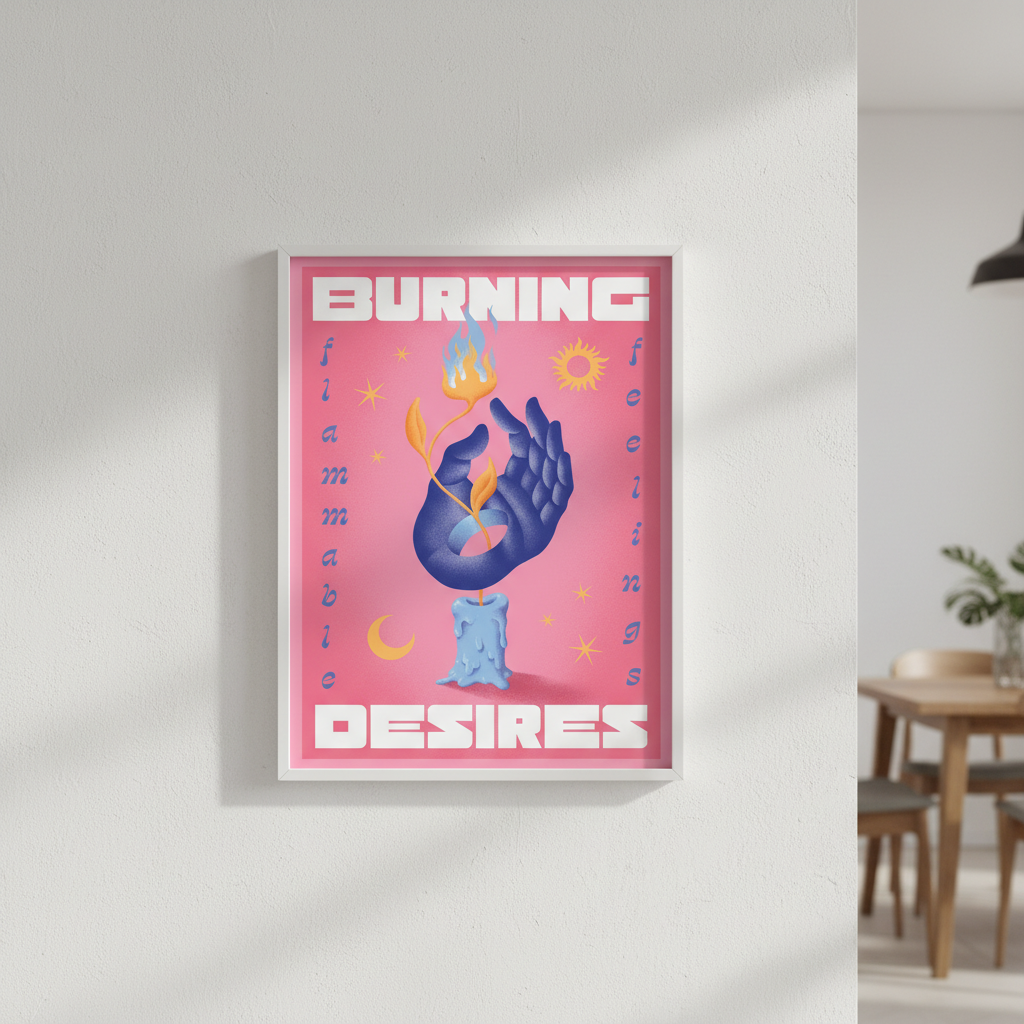 Ignite your walls with this striking artistic illustration featuring a delicate hand cradling a mesmerizing flame against a soft pink backdrop. Created by Itamar Makover, "Burning Desires" blends contemporary art with poetic symbolism, making it a conversation starter for any room. Perfect for adding warmth, intrigue, and a touch of creative flair to your space. Whether you're drawn to bold artistic statements or subtle emotional depth, this piece brings personality and passion to your décor.