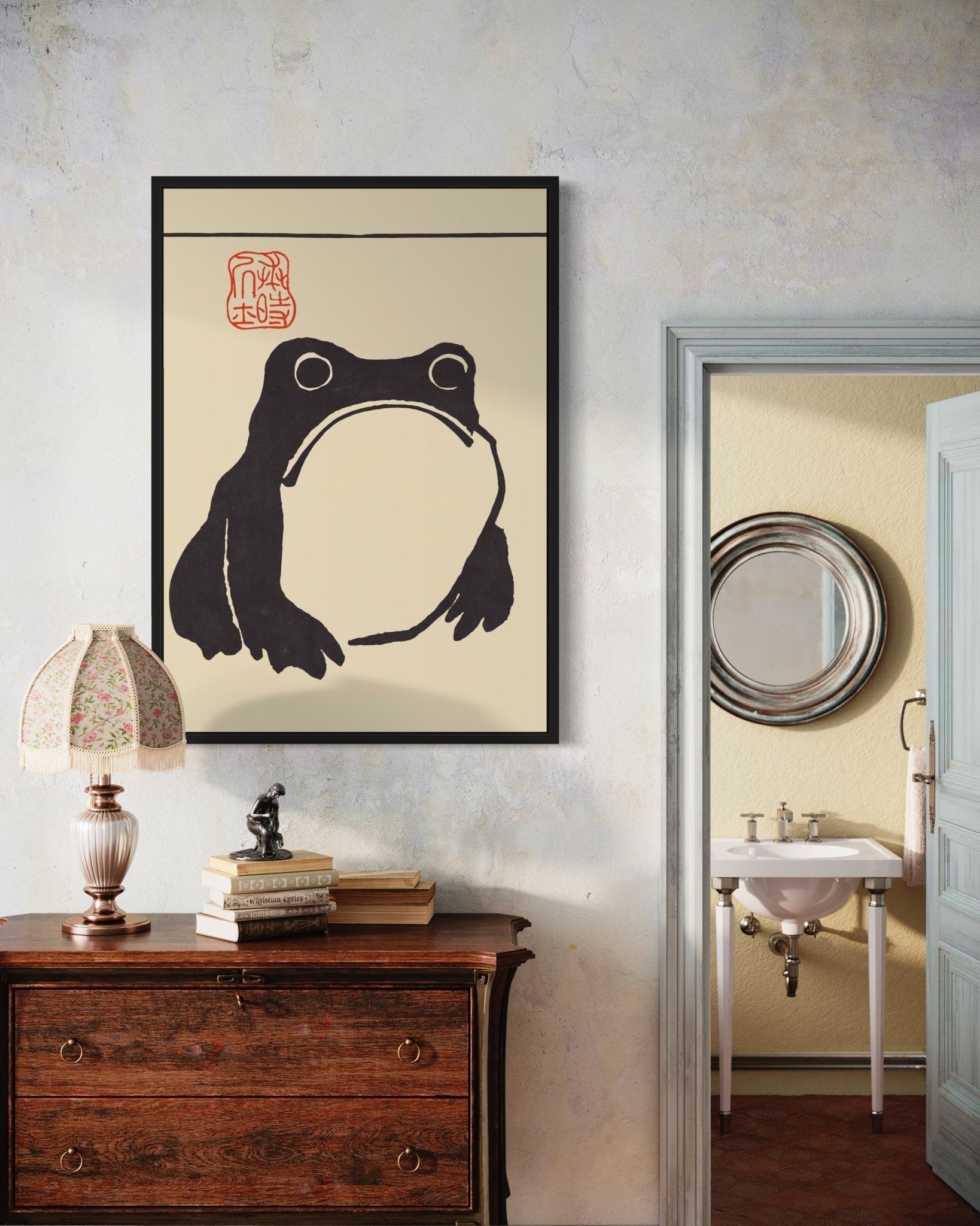 Introducing our captivating Grumpy Japanese Frog Wall Art, a stunning poster that combines frog charm with Japanese artistry. This unique piece showcases a grumpy frog in a Japanese style, with intricate details and vibrant colours. Perfect for adding whimsy and cultural flair to any space, this poster is sure to be a conversation starter and a delightful addition to your home decor. Embrace the fusion of Japanese aesthetics with this captivating wall art that brings joy and intrigue to any room.