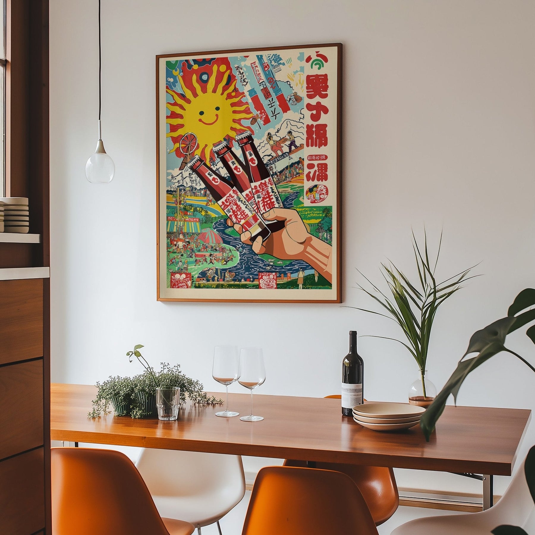 Add some vintage charm to your space with our Japanese beer poster from the 1930s. Perfect for any room, this fun art piece will add personality to your living room, kitchen, or bedroom. Cheers to a unique wall art!