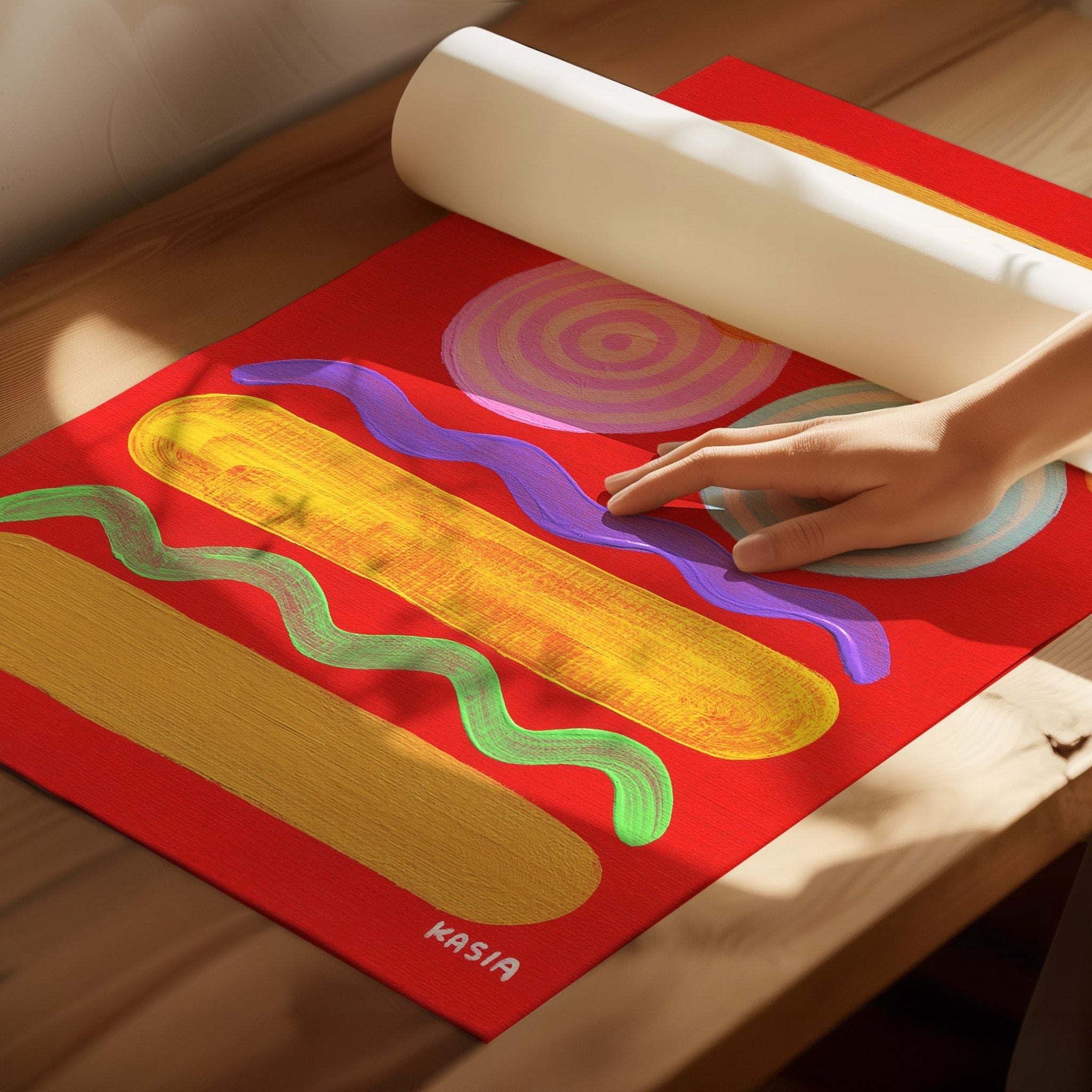 Candy Carnival Trio by Kasia Sykus brings vibrant energy to any space with its playful design and bold colour palette. This striking poster features whimsical carnival-inspired artwork that transforms living rooms, kitchens, and bedrooms into dynamic, joyful environments. Perfect for adding personality and visual interest to your walls, this piece combines artistic sophistication with lighthearted charm. Ideal for those seeking statement décor that sparks conversation and elevates everyday spaces with contemporary flair.