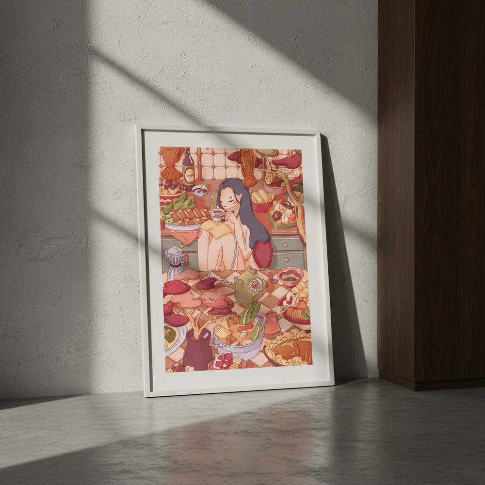 Lauren Ly creates intricate, nostalgic interior scenes inspired by childhood memories, food, and domestic comforts, inviting viewers into richly imagined worlds that evoke personal memories of favourite places, stories, and everyday joys.