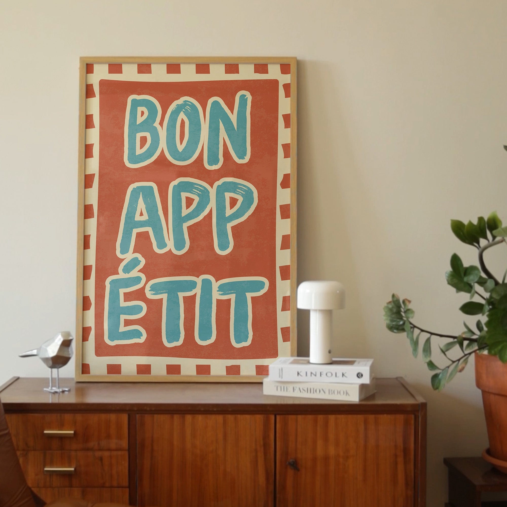 This Bon Appetit Print Artwork is perfect for your living room, kitchen, or bedroom. Its fun design will add a touch of charm to any space. Made with high-quality materials, this poster is sure to impress and inspire culinary greatness in your home.