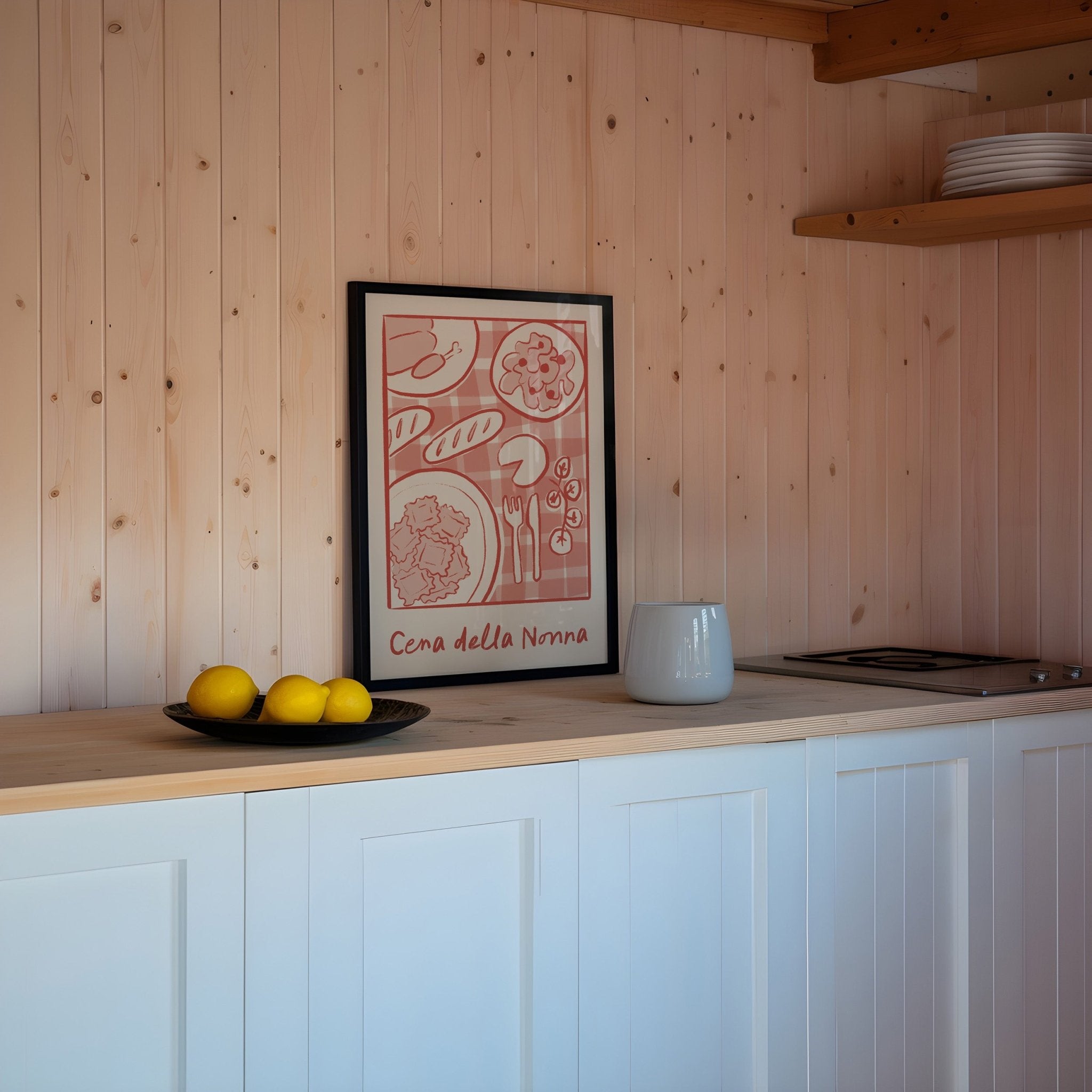 Decorate your home with Cena Della Nonna by Lucia Sankovic. This stunning piece is perfect for any room, from the kitchen to the living room. Add it to your gallery wall, or use it to create a stylish and inviting study, dining room, or hall way. With its playful yet sophisticated design, it's sure to be a conversation starter.