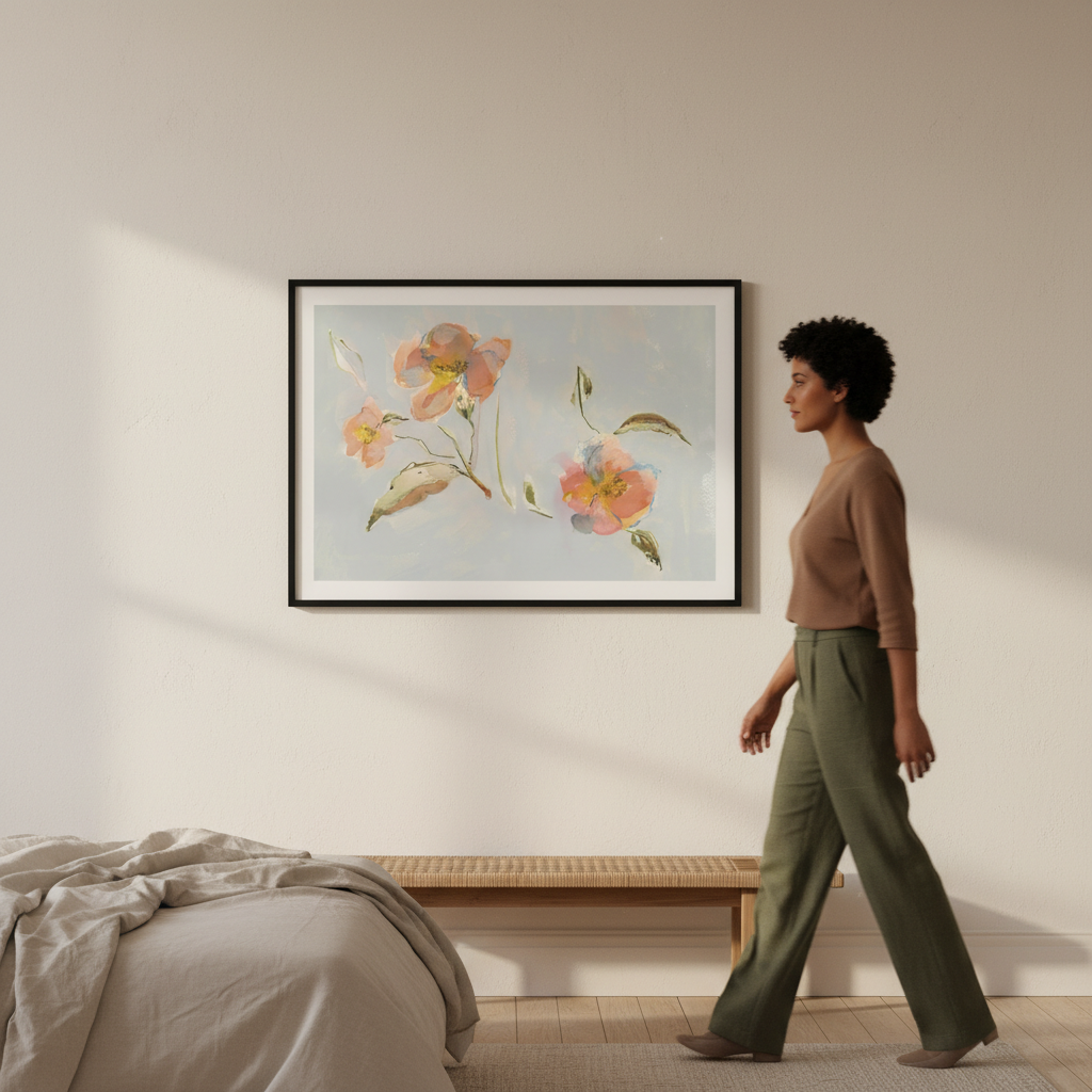 Transform your walls into a garden of joy with this enchanting floral masterpiece. Vibrant pink and sunny yellow blossoms bloom across a dreamy light canvas, creating an instant mood-lifter for any room. This whimsical design captures the carefree spirit of nature, perfect for those who want their space to radiate warmth and personality. Whether displayed in a bedroom, living area, or creative sanctuary, it's the kind of art that makes you smile every time you glance at it. A delightful escape from the ordinary.