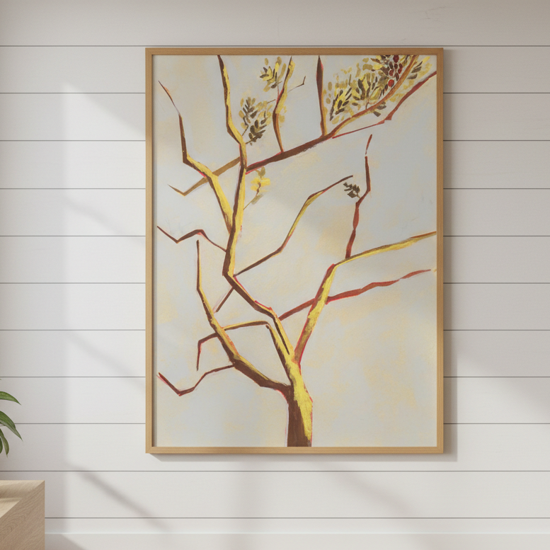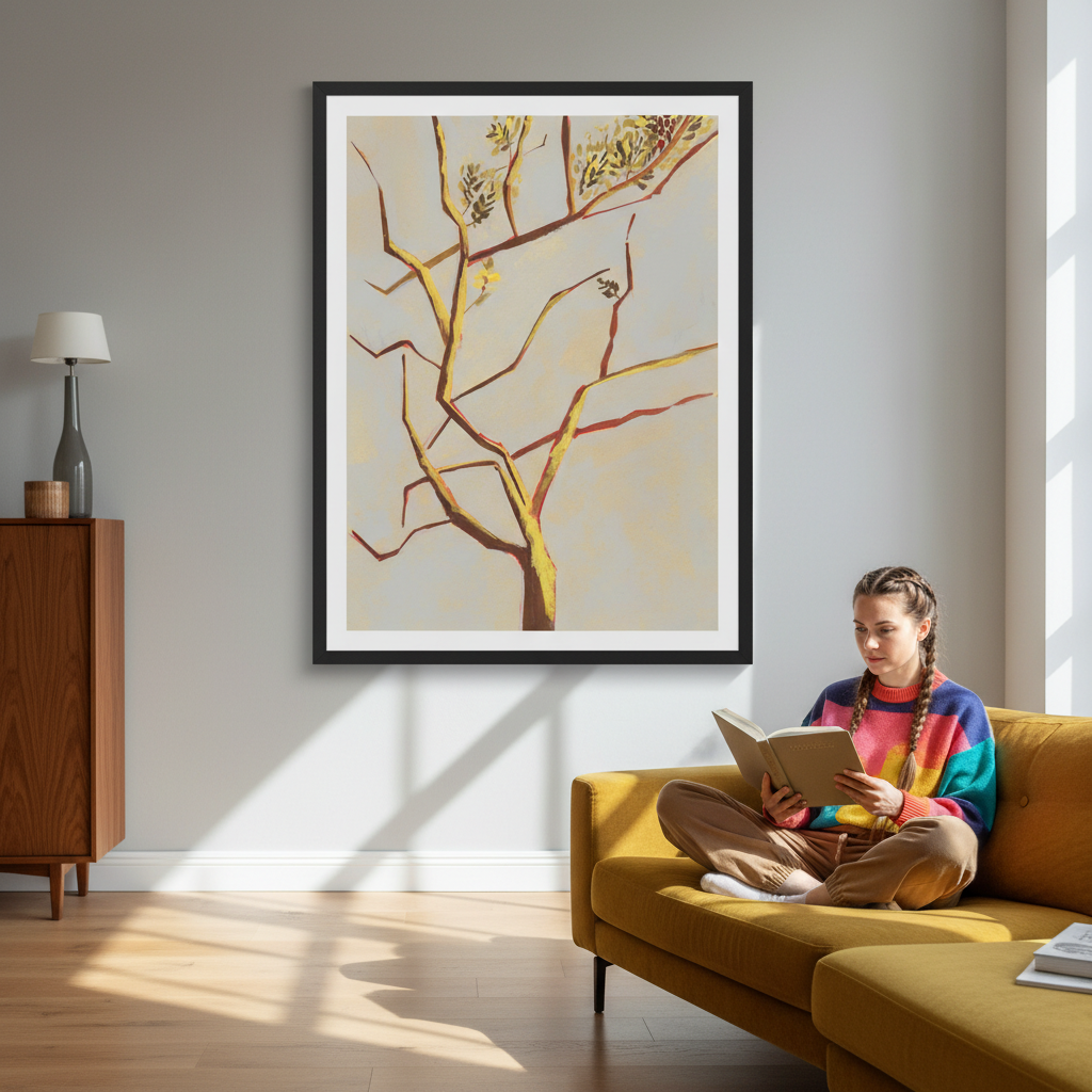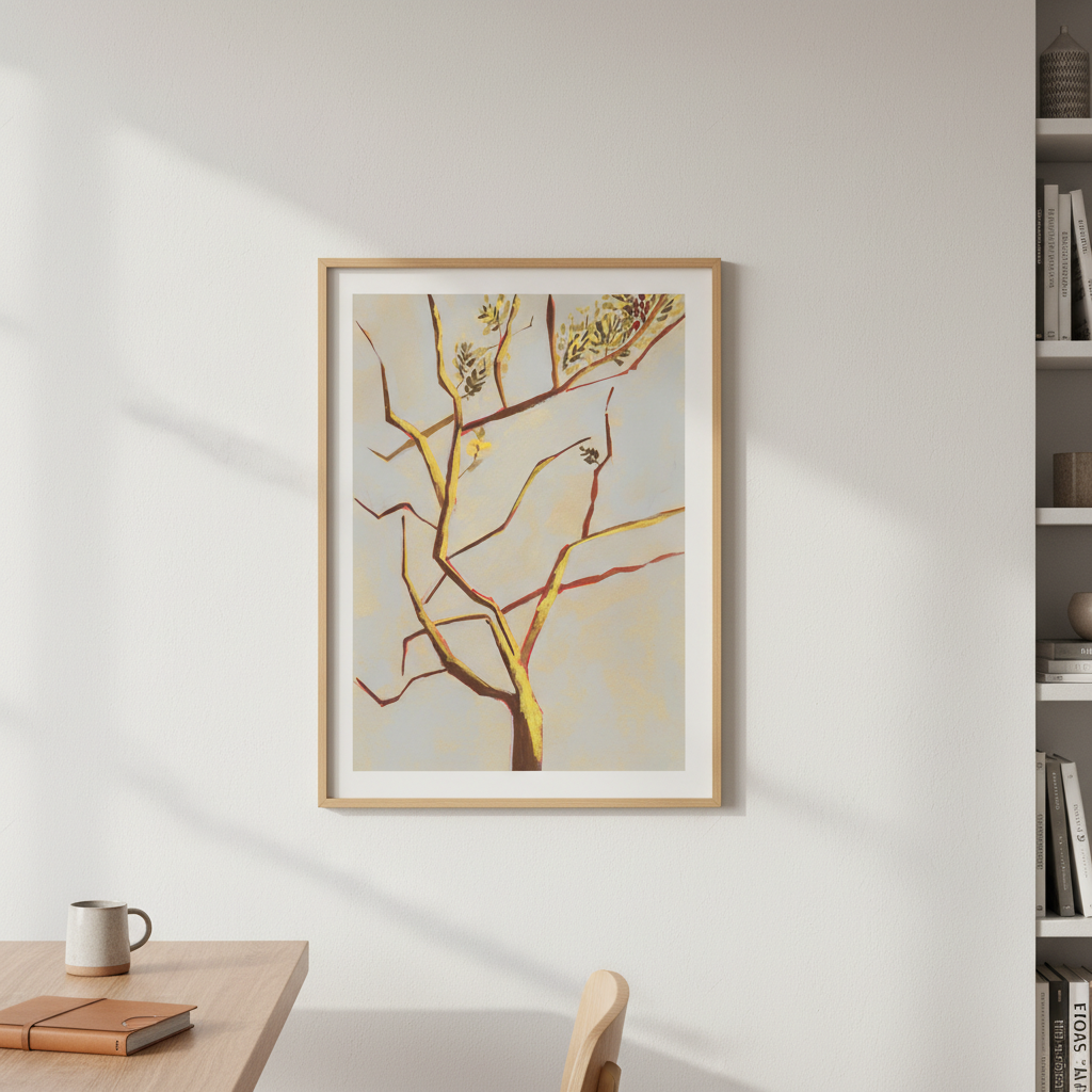 Autumn Light by Lucrecia Caporale captures the poetic beauty of seasonal transition with an artistic flair. This enchanting piece features a delicate tree with gracefully bare branches adorned with scattered leaves, all rendered against a soft, luminous background. Perfect for adding a touch of nature-inspired whimsy to any room, this artwork celebrates the quiet magic of autumn's arrival. Whether you're drawn to minimalist aesthetics or love celebrating the changing seasons, this playful yet sophisticated print brings warmth and artistic character to your walls.