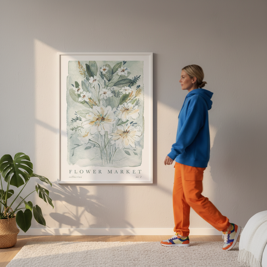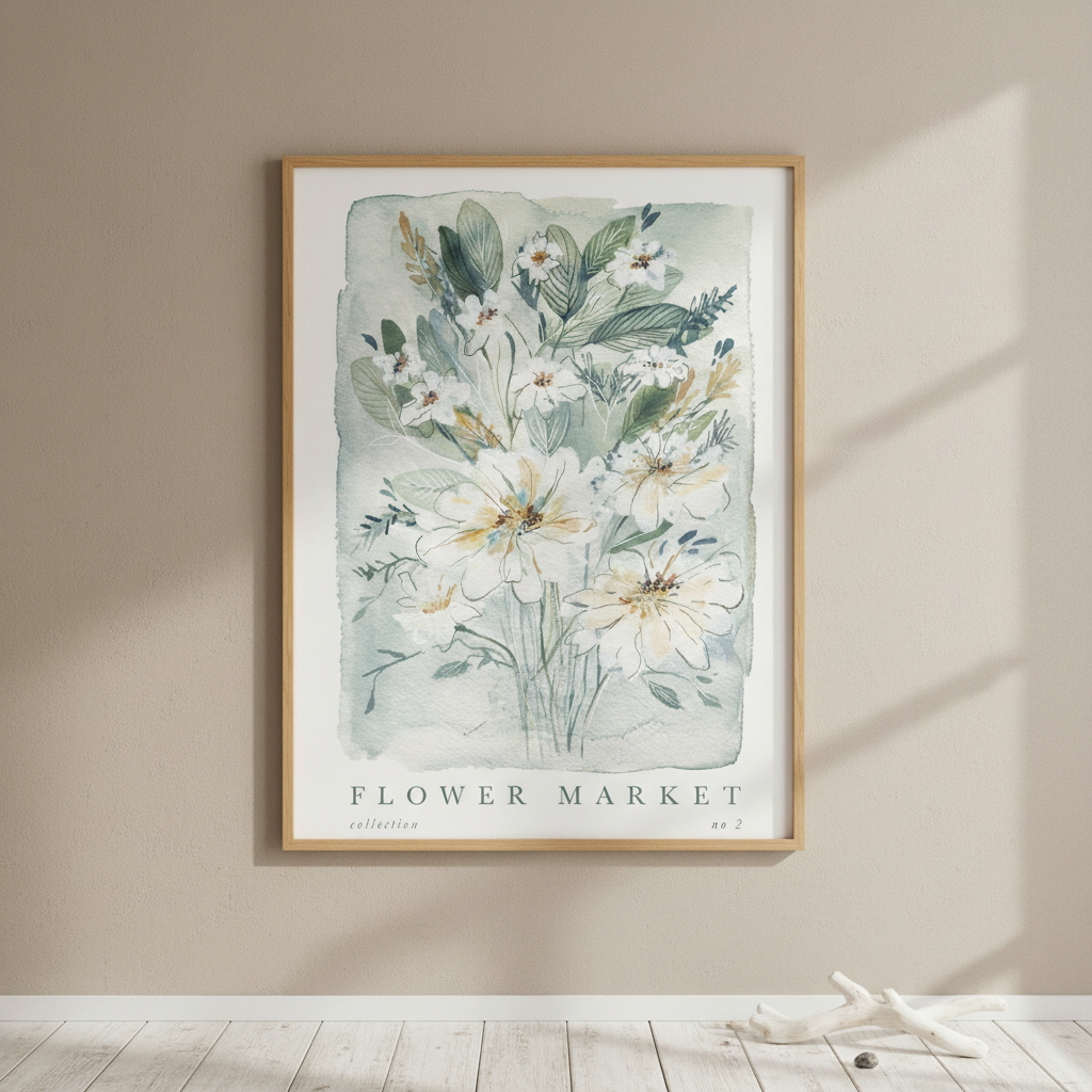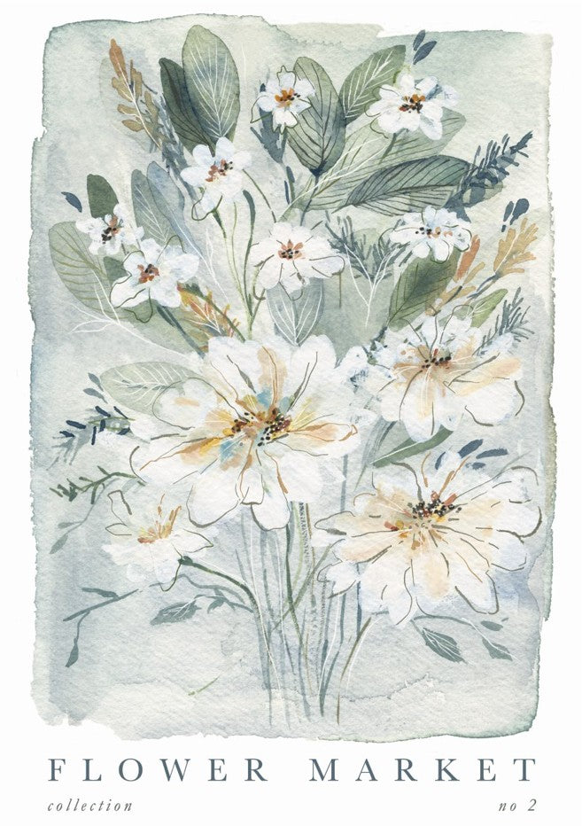 Flower Market II captures the essence of botanical elegance through Lucrecia Caporale's refined illustration technique. Delicate white blooms and verdant foliage are rendered with meticulous detail against a subtly textured backdrop, creating visual depth and sophistication. This piece from the Flower Market collection brings gallery-quality artistry to your space, offering a timeless aesthetic that complements both contemporary and traditional interiors. Perfect for those seeking understated floral beauty with artistic integrity.