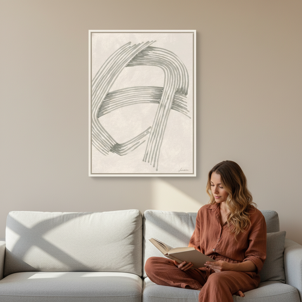Form in Motion by Lucrecia Caporale is a striking abstract composition featuring bold black lines dancing across a warm beige canvas. This contemporary artwork celebrates the beauty of minimalist design, where flowing curves and geometric intersections create visual intrigue without overwhelming the space. Perfect for adding a touch of modern sophistication to any room, this piece brings artistic flair while maintaining a calm, understated elegance that complements both minimalist and eclectic interiors.