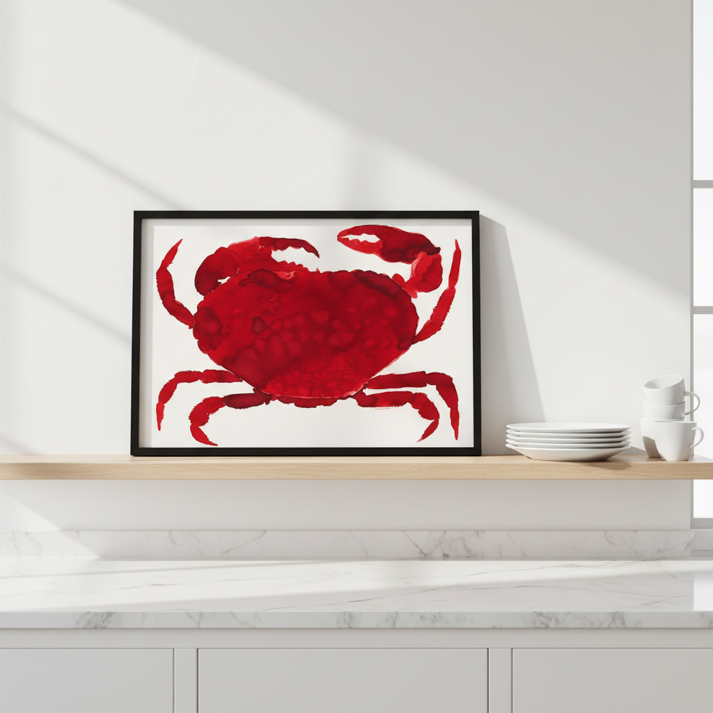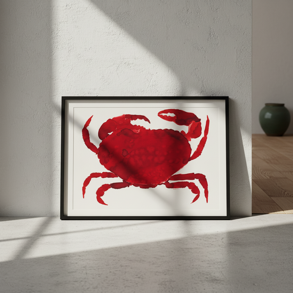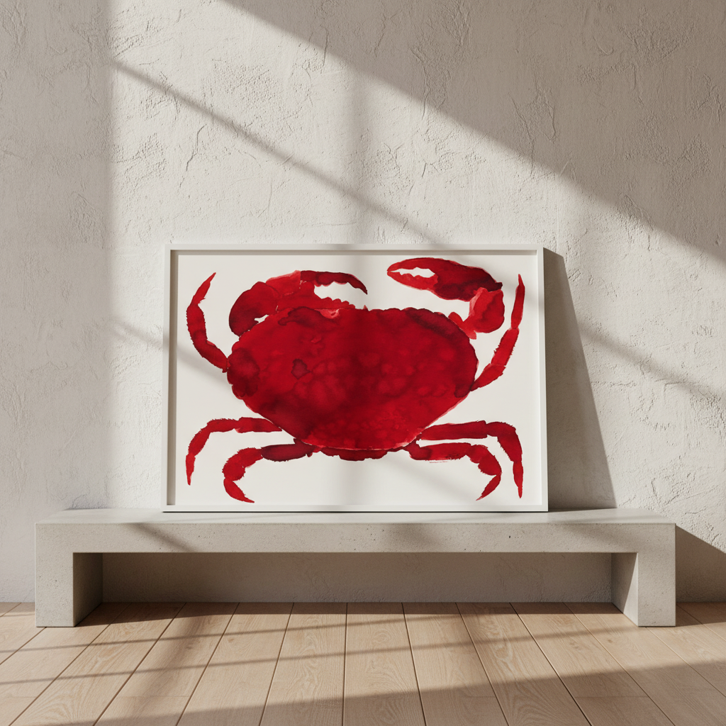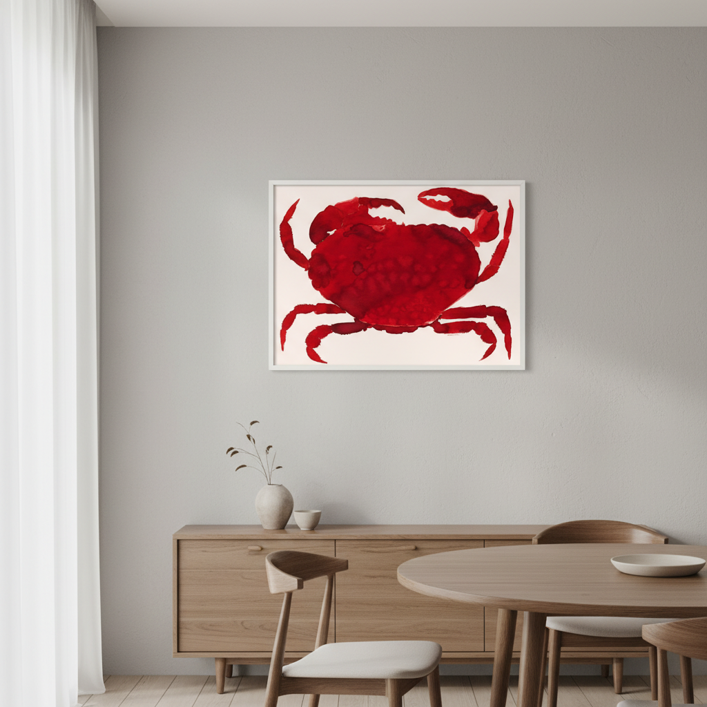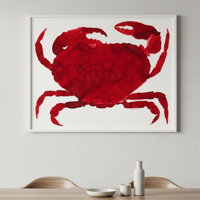 Cangrejo by Marina García Fernández showcases a striking red crab illustration rendered against a pristine white background. This artwork captures the crustacean's distinctive form with artistic precision, making it an ideal choice for coastal-inspired interiors or contemporary gallery walls. The minimalist composition allows the vibrant red subject to command attention while maintaining visual sophistication. Perfect for adding a touch of marine elegance to any space, this piece combines artistic merit with decorative appeal.