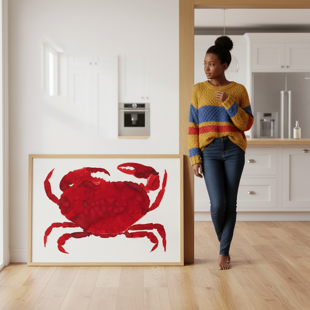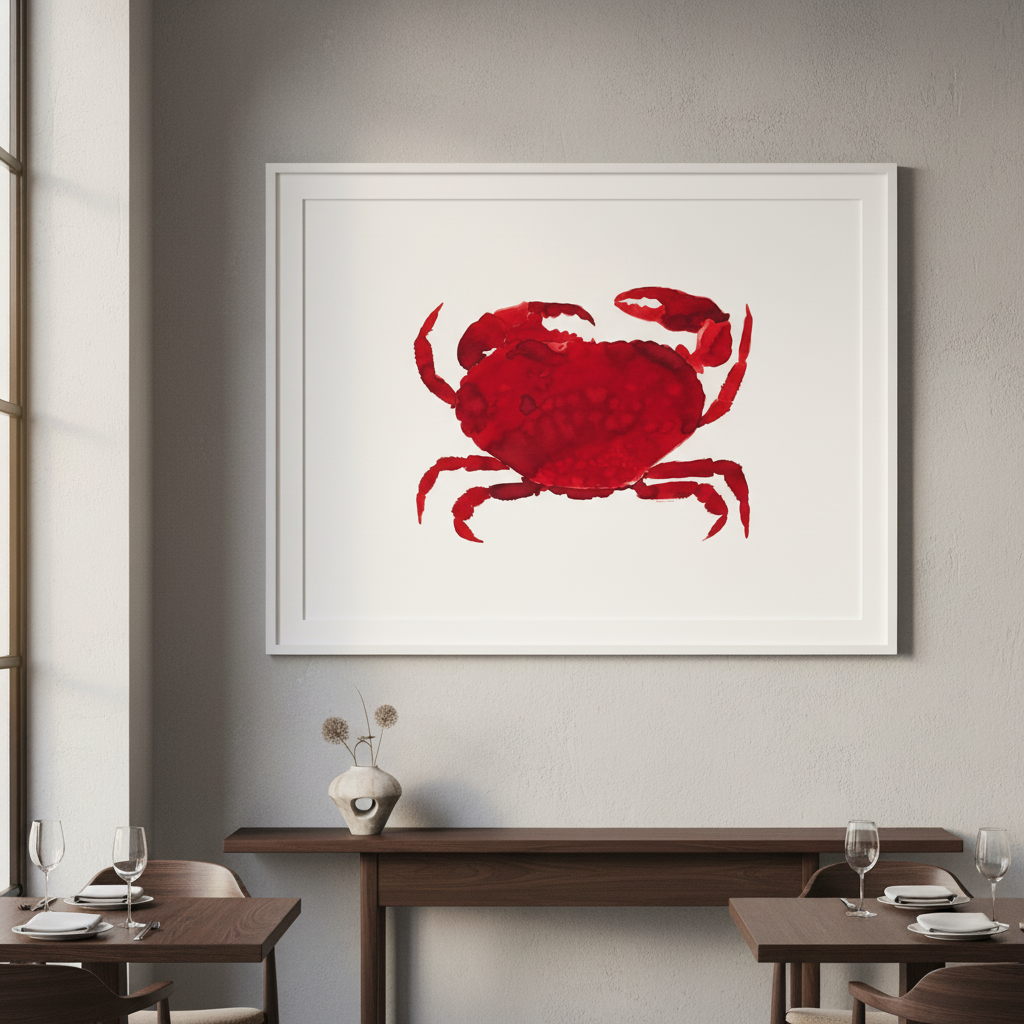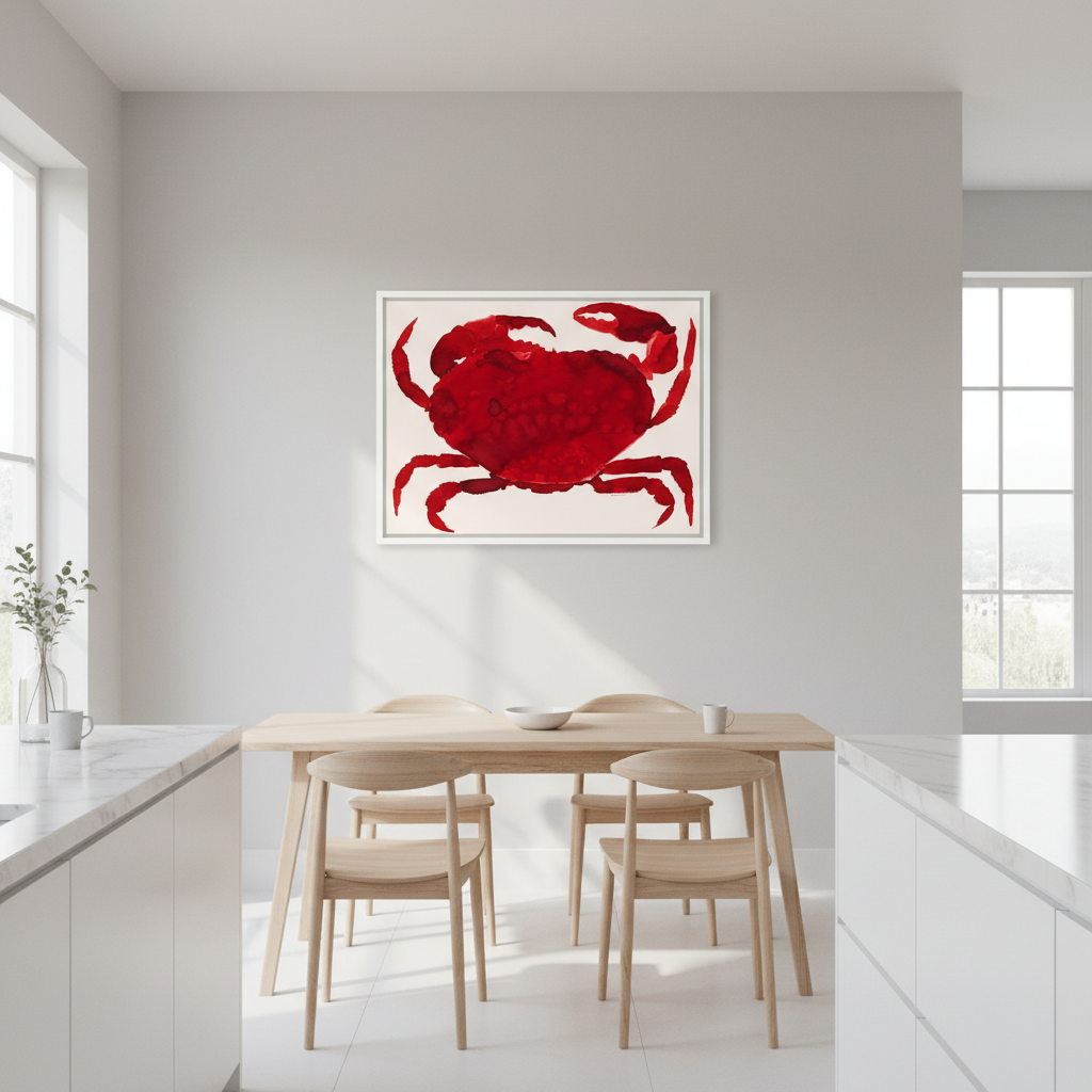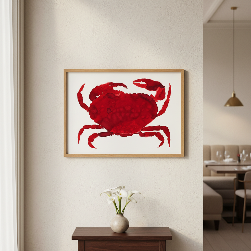 Cangrejo by Marina García Fernández showcases a striking red crab illustration rendered against a pristine white background. This artwork captures the crustacean's distinctive form with artistic precision, making it an ideal choice for coastal-inspired interiors or contemporary gallery walls. The minimalist composition allows the vibrant red subject to command attention while maintaining visual sophistication. Perfect for adding a touch of marine elegance to any space, this piece combines artistic merit with decorative appeal.