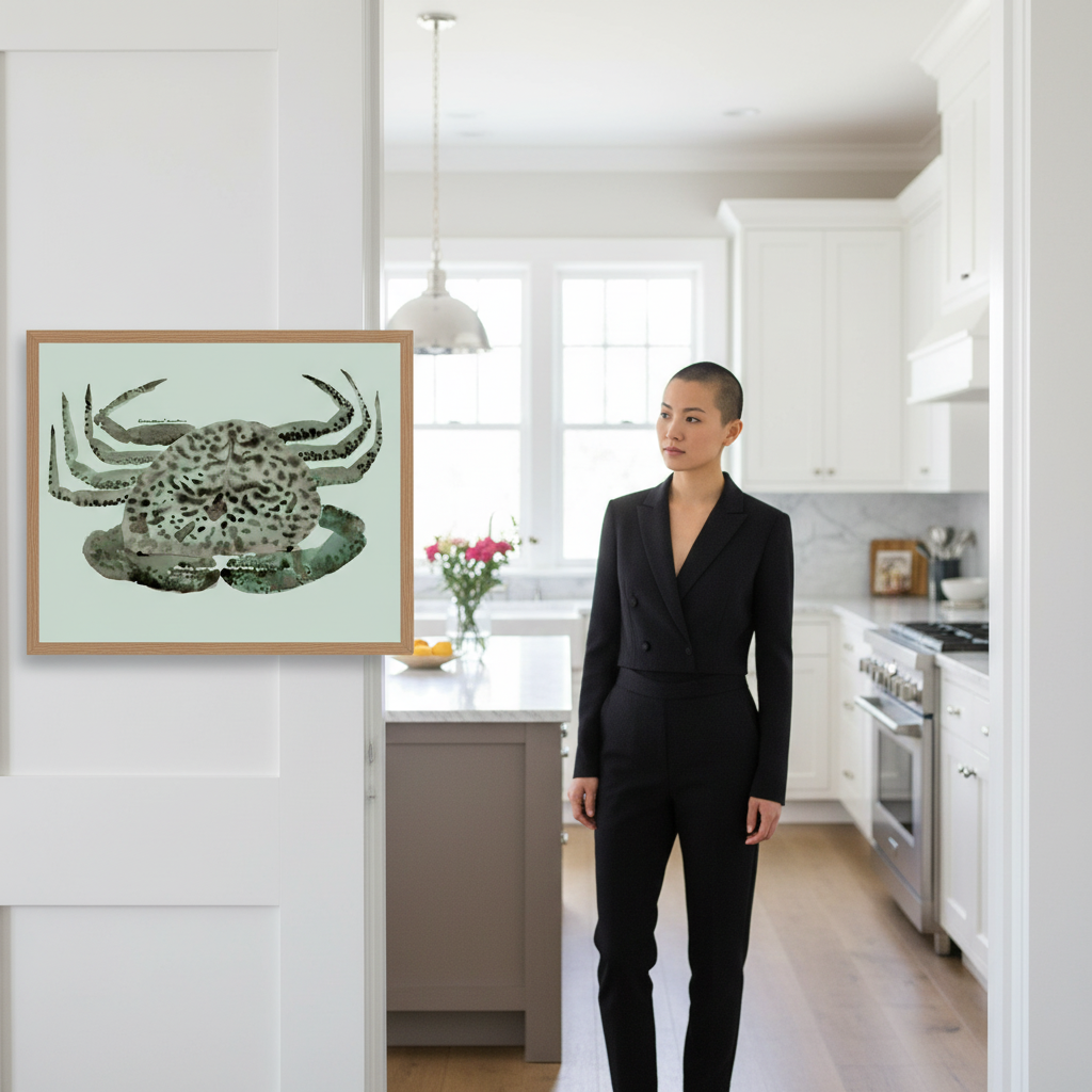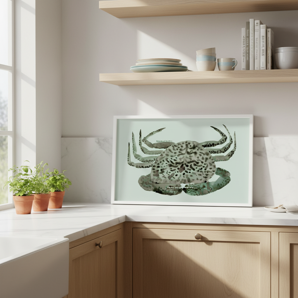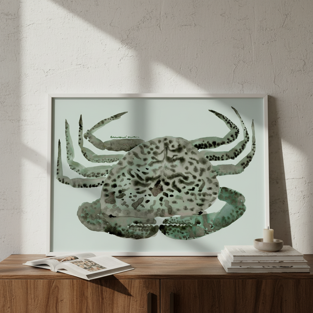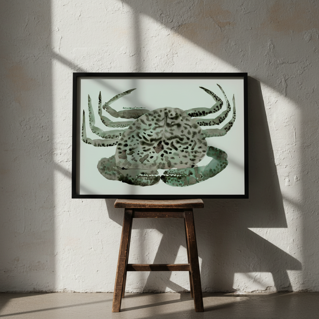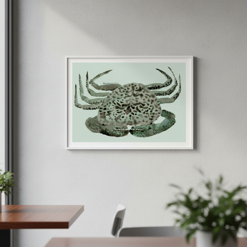 Cangrejo Verde by Marina García Fernández presents a sophisticated artistic interpretation of a crab rendered with intricate, stylized patterning. The composition features the subject against a serene light background, allowing the detailed linework and decorative motifs to command attention. This piece exemplifies contemporary botanical and zoological art, combining naturalistic observation with abstract embellishment. The refined execution and thoughtful colour palette make it an ideal selection for spaces requiring visual interest without overwhelming existing décor. A striking addition to any art collection or interior scheme.