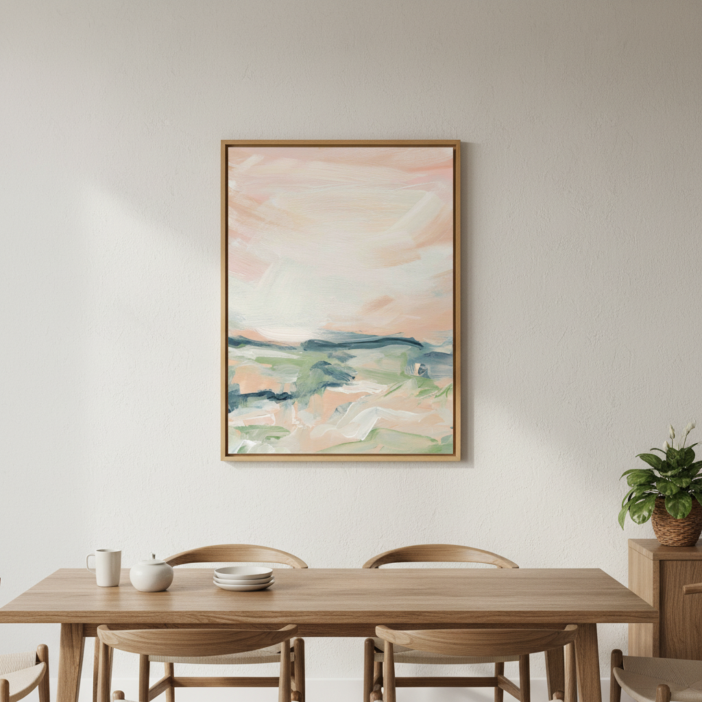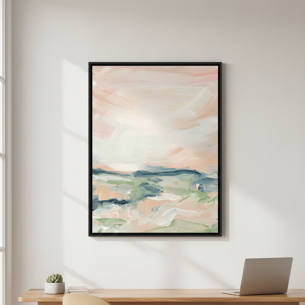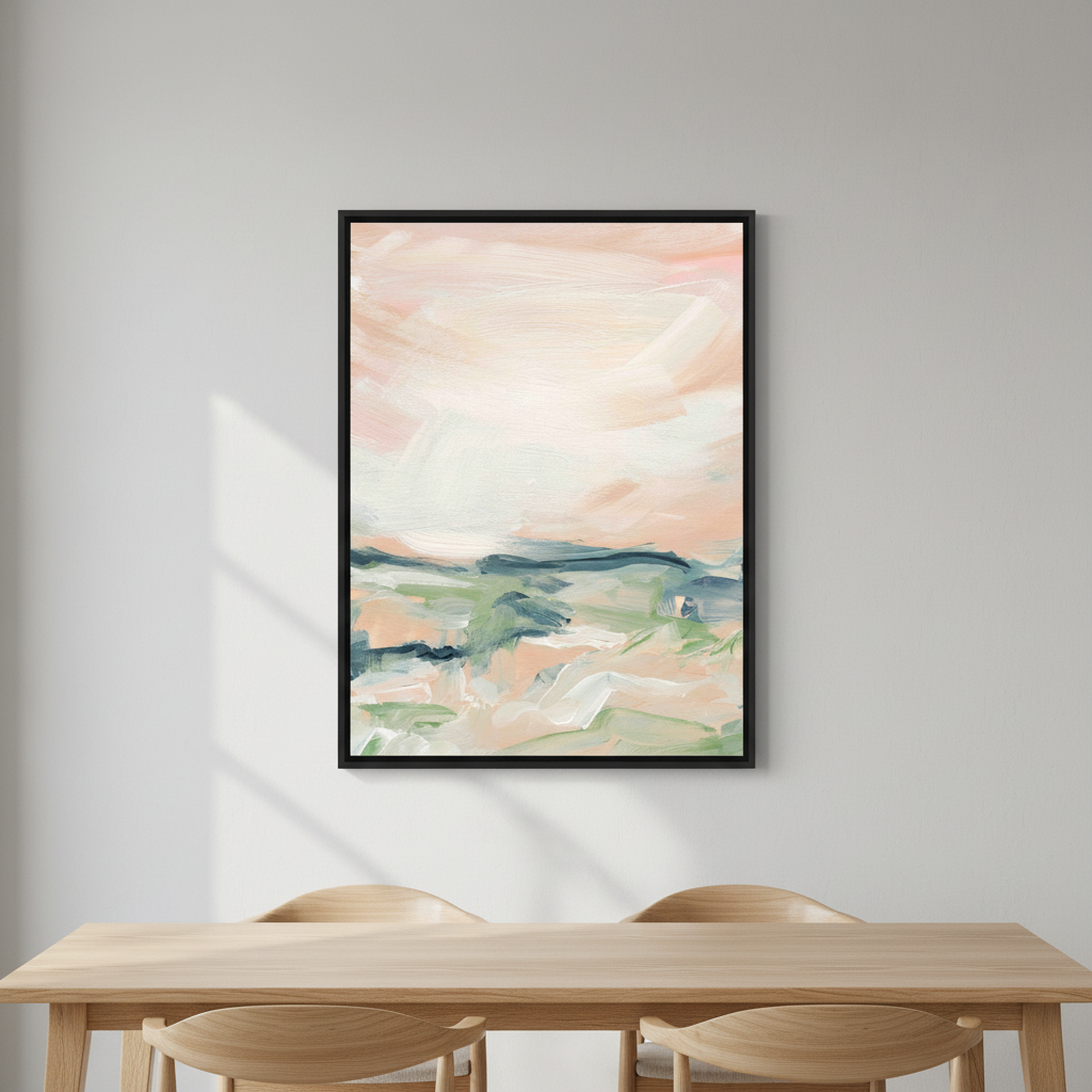 Ethereal Drift captures the essence of contemporary abstraction through delicate layering and intuitive mark-making. Soft pastels—blush, sage, and cream—blend seamlessly across the canvas, creating a sense of movement and tranquility. Meredith O'Neal's confident brushwork reveals both deliberate gestures and spontaneous flourishes, inviting viewers to discover their own narrative within the composition. This piece brings sophistication and calm to any interior space, serving as a focal point that rewards contemplation.