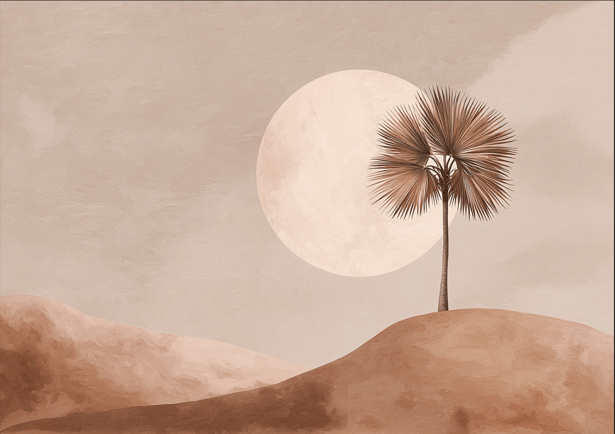 Elevate your living space with the Moonrise Palm Wall Art, a sophisticated piece that brings a serene tropical ambiance to any room. Perfect for the living room, kitchen, or bedroom, this poster combines subtle fun with elegant design, creating a calming yet stylish focal point that complements a variety of decor styles.