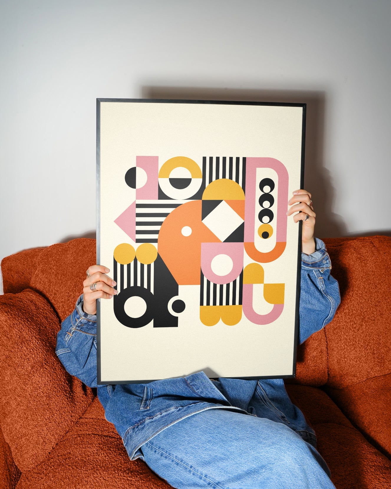 Add a touch of sophisticated vibrancy to your living room, kitchen, or bedroom with the Colourful Bauhaus poster by Maison Bootsy. This artful design blends bold colors and geometric shapes, creating a lively yet elegant atmosphere that complements modern interiors. Perfect for those who appreciate refined style with a playful edge.
