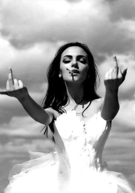 Stick it to the patriarchy with this vintage-inspired wall art featuring a bold middle finger. Let this photograph empower your inner feminist and add a touch of rebellion to any room.