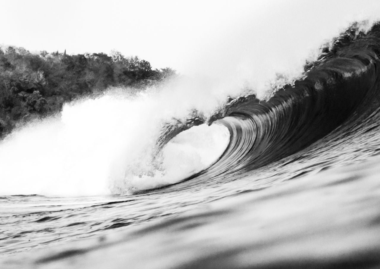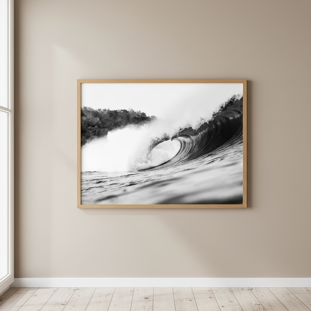 Before Collapse captures the ocean in its most elemental form. Shot in crisp black and white, the wave curls inward with precision and force, revealing texture, movement, and rhythm without distraction. There is no human presence, only the raw architecture of water in motion.
