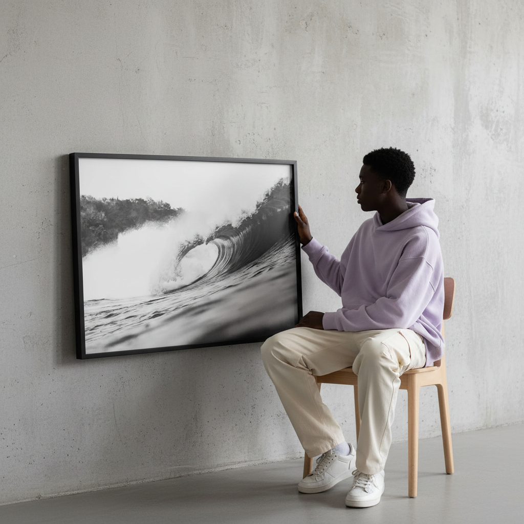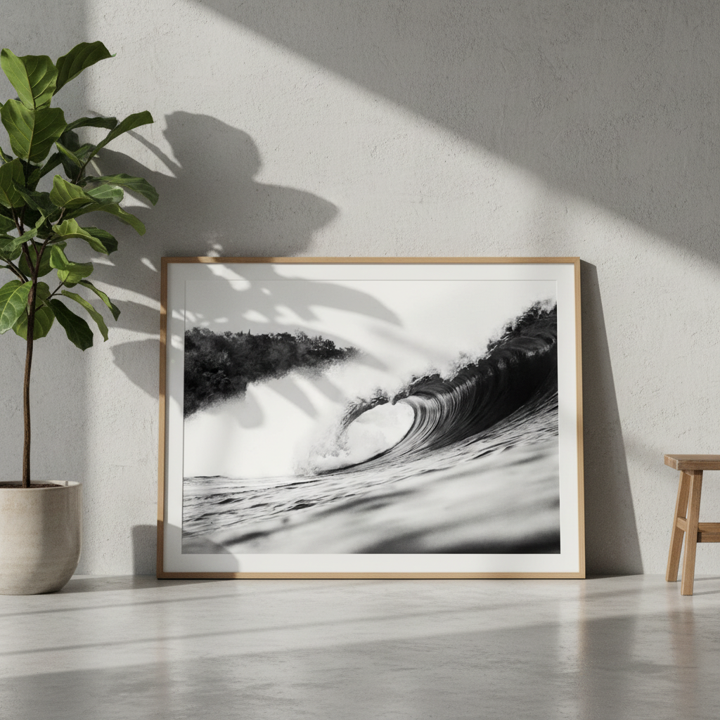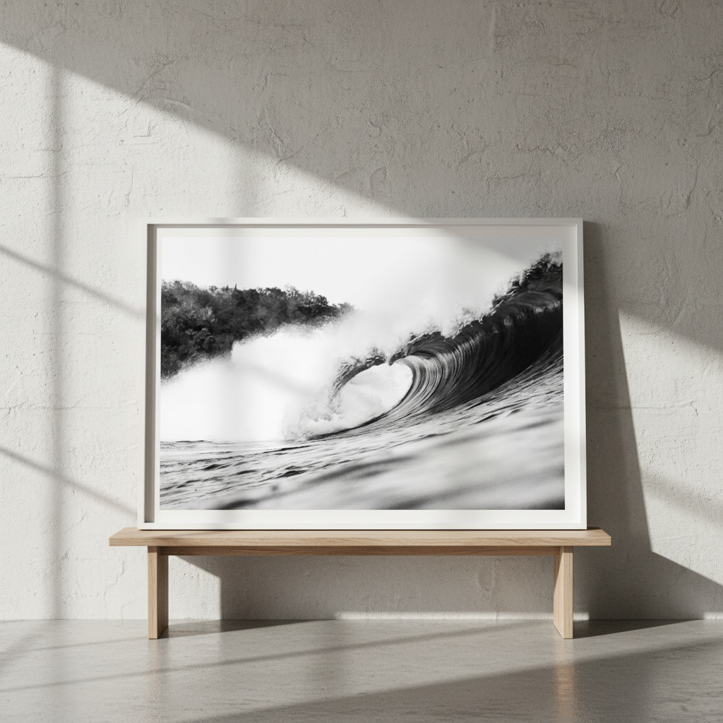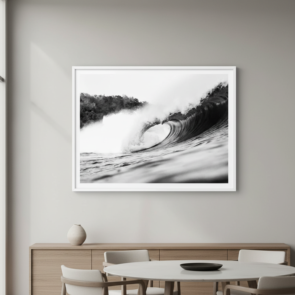 Minimal yet commanding, Pure Break brings a sense of movement and clarity into a space. Perfect for modern, coastal, and minimalist interiors, it pairs effortlessly with monochrome photography or stands alone as a bold statement piece.