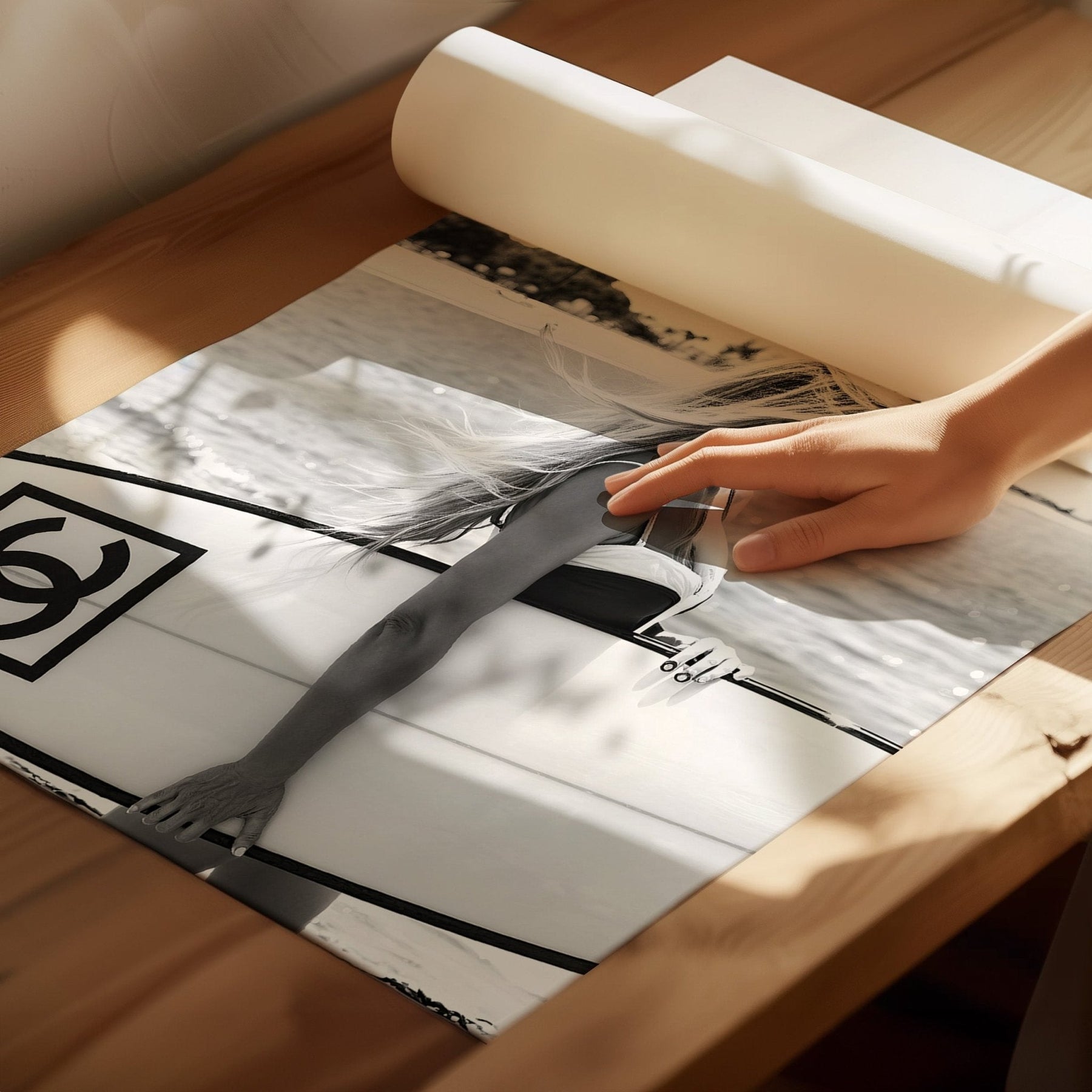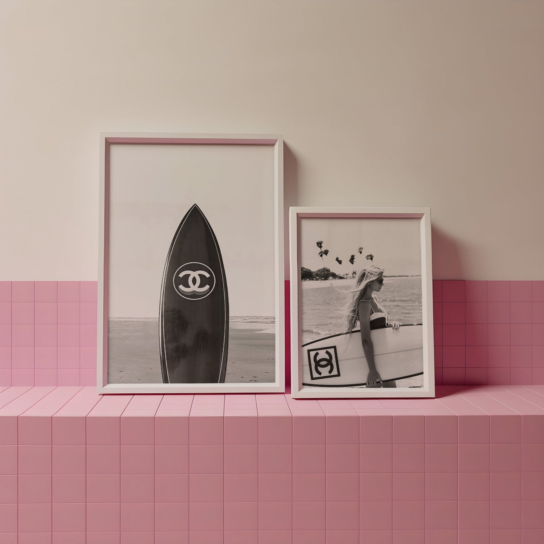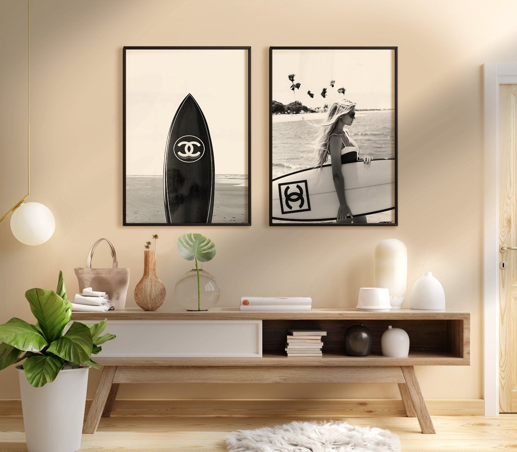 Transform your space with this quirky set of two Chanel poster beach photograph wall art. Perfect for adding a playful touch to your living room, kitchen, or bedroom. (Note: No need to be a poser to appreciate these fun pieces!)
