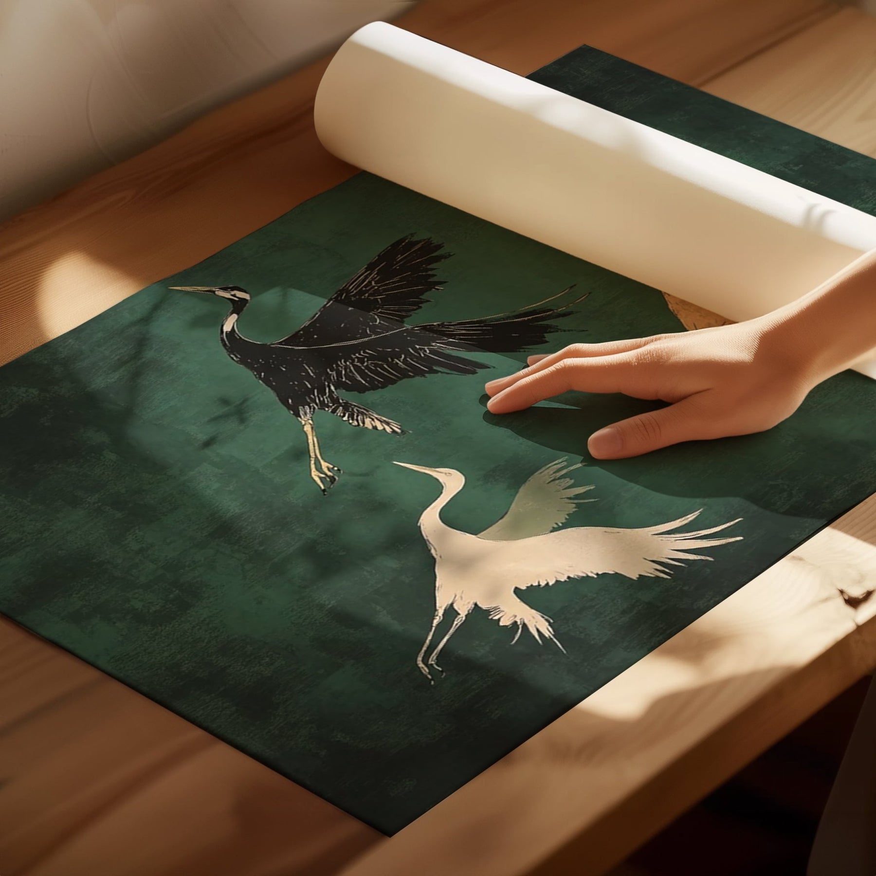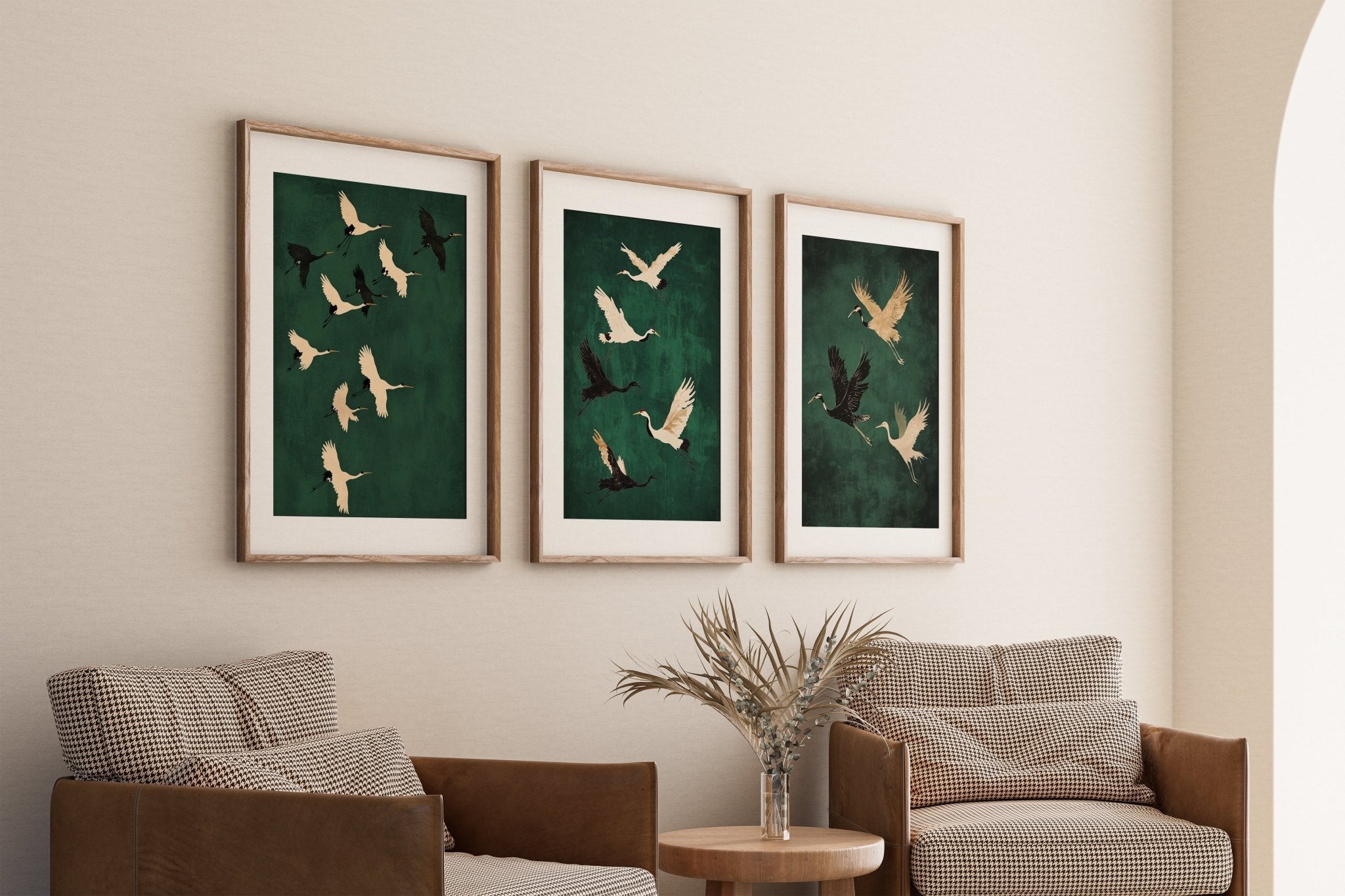 Set of 3 Flying Cranes Emerald Sky