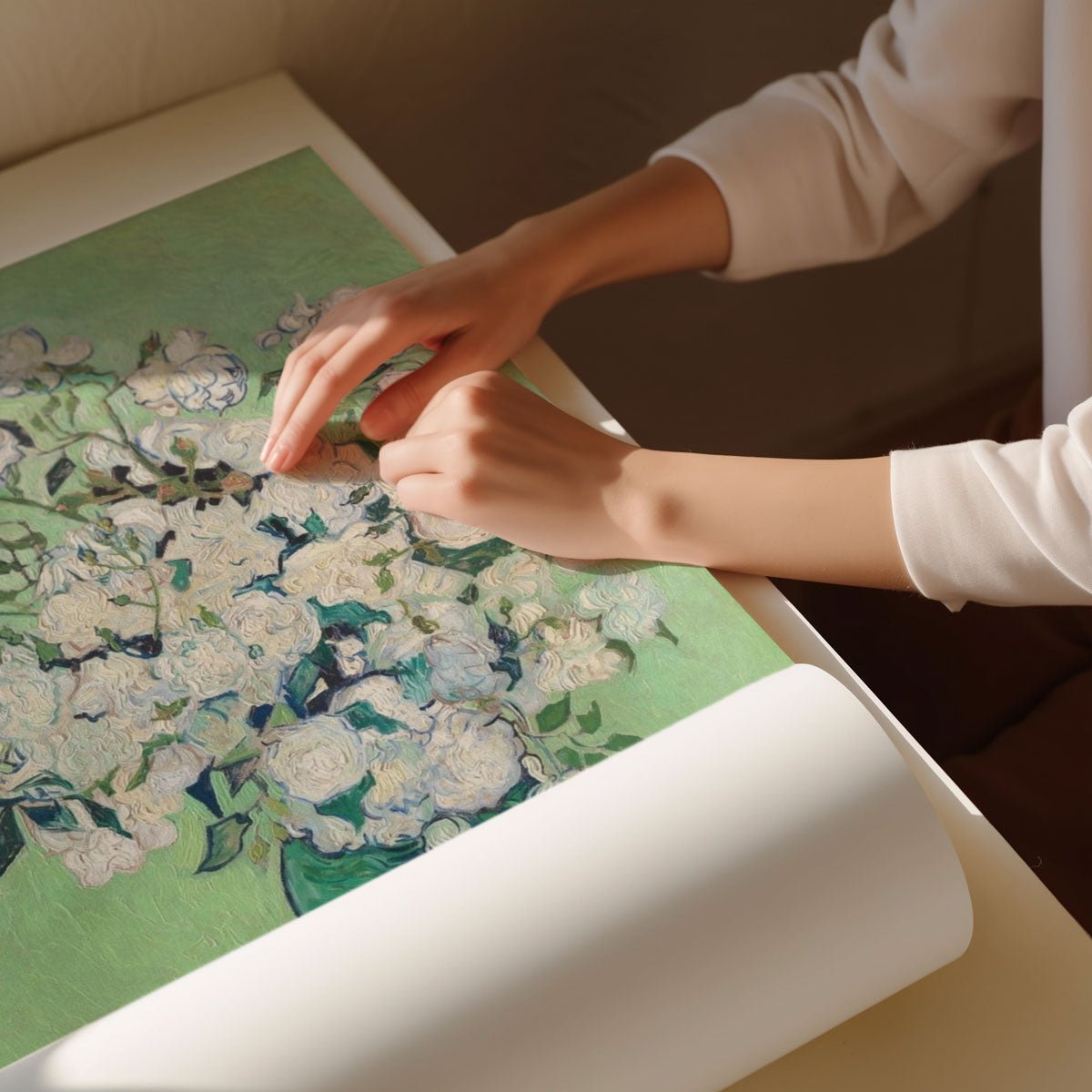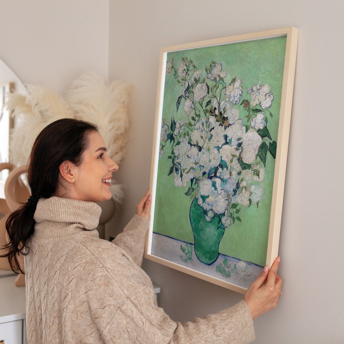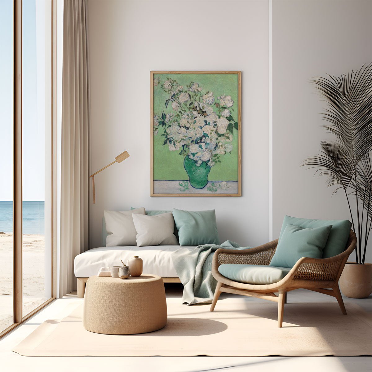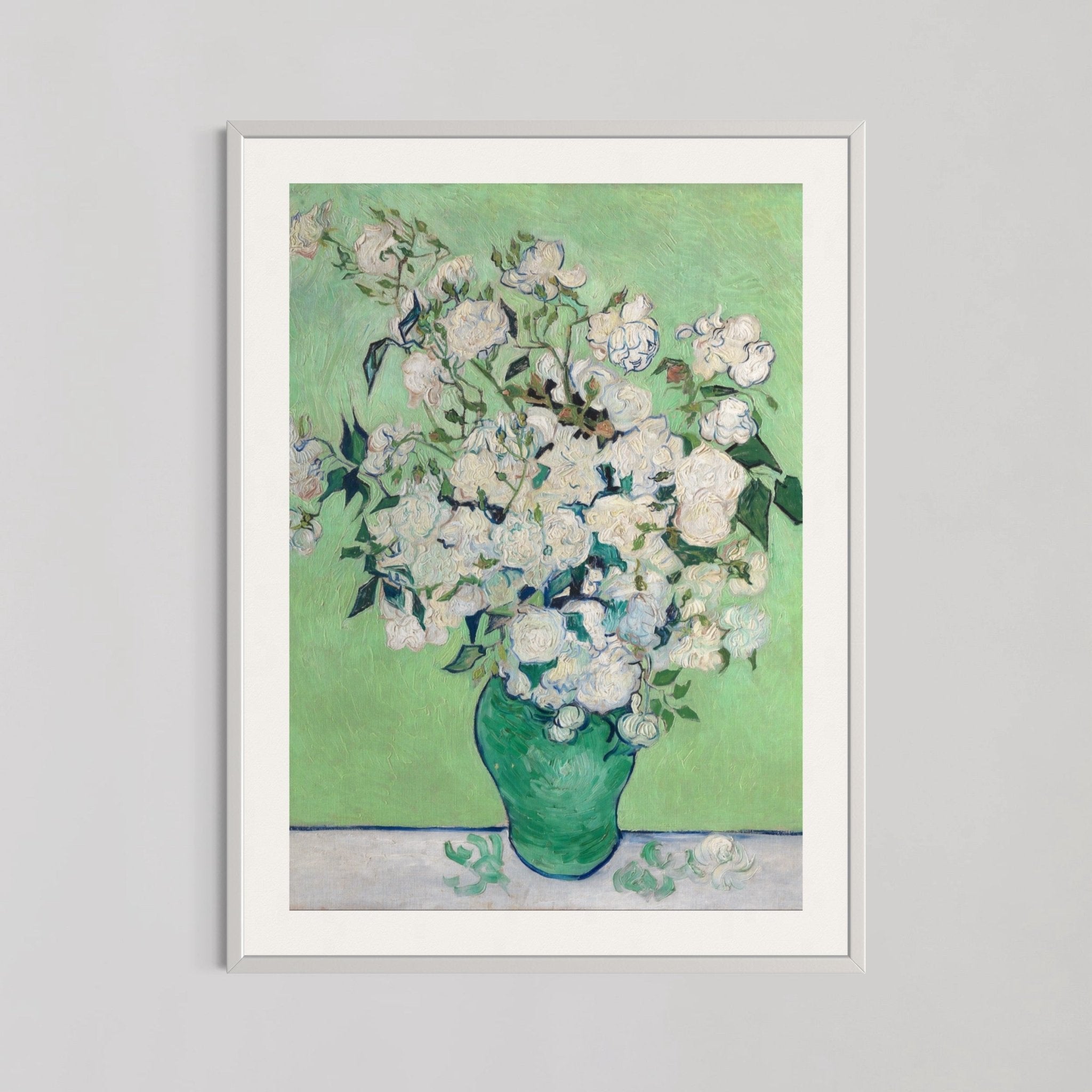 Experience the exquisite beauty of Vincent van Gogh's Still Life Vase with Pink Roses Wall Art. The detailed brushstrokes and delicate colors capture the essence of the renowned artist's work. Perfect for adding a touch of elegance to any space.