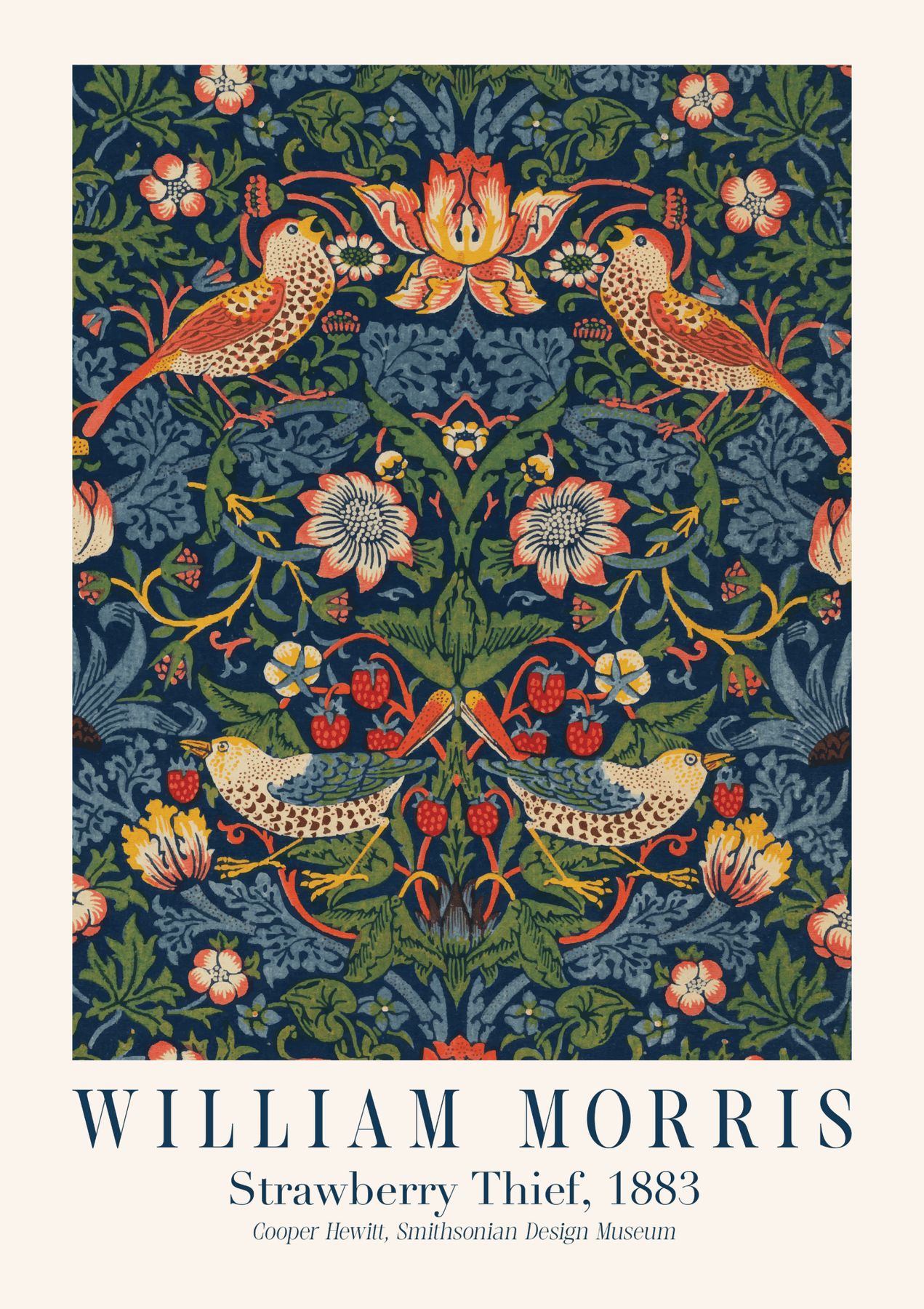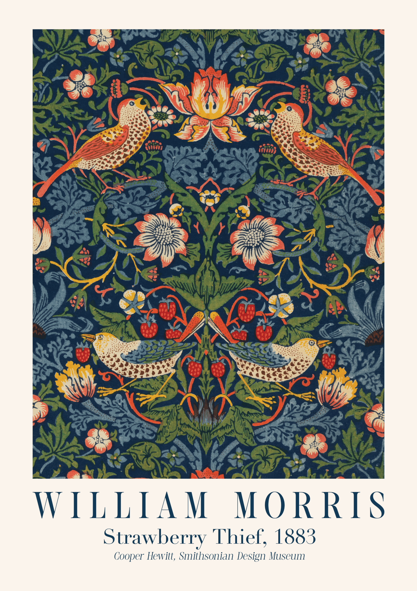 Elevate your living space with the timeless elegance of "Strawberry Thief," William Morris's iconic 1883 masterpiece. This sophisticated print features Morris's celebrated pattern of birds and strawberries in rich, jewel-toned hues. Perfect for adding artistic heritage to your living room, kitchen, or bedroom, this poster brings a touch of Victorian aesthetic sensibility to contemporary interiors.