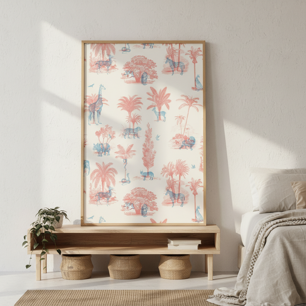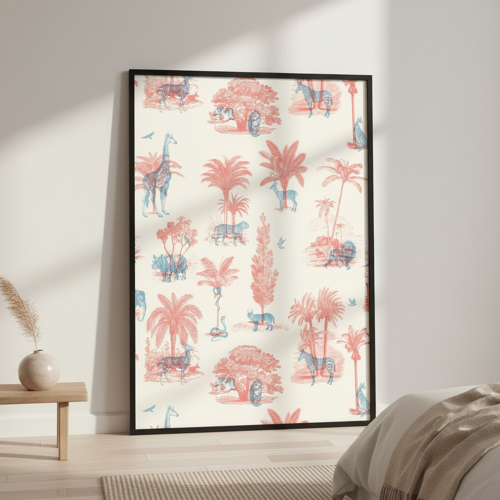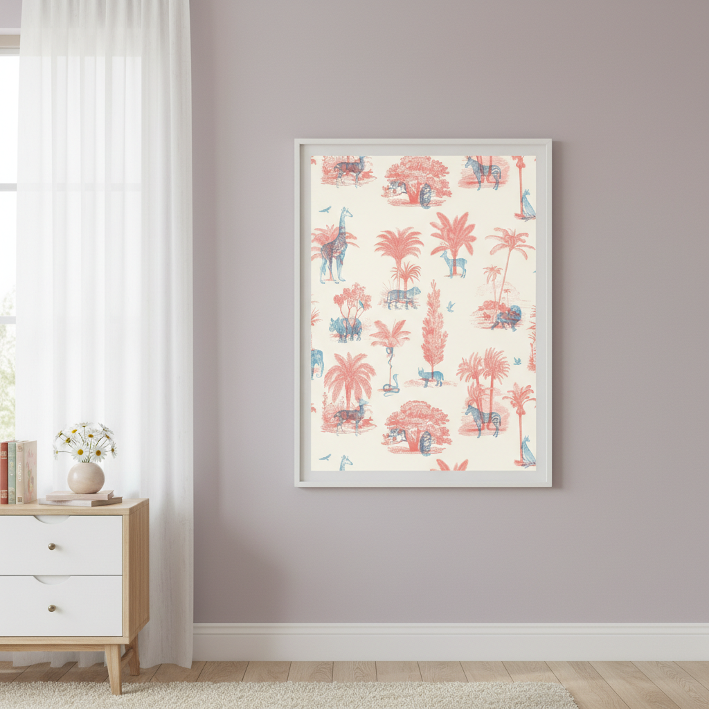 Discover the whimsical charm of Where They Belong by Florent Bodart, a beautifully patterned fabric featuring an enchanting array of pink and blue animals and plants set against a crisp white background. This design seamlessly blends artistic sophistication with playful imagery, making it an ideal choice for creating statement pieces, upholstery, or decorative accents. The balanced colour palette and intricate detailing showcase Bodart's distinctive illustrative style, while the versatile white base ensures effortless coordination with existing décor schemes. Perfect for those seeking to introduce character and visual interest to their interiors.