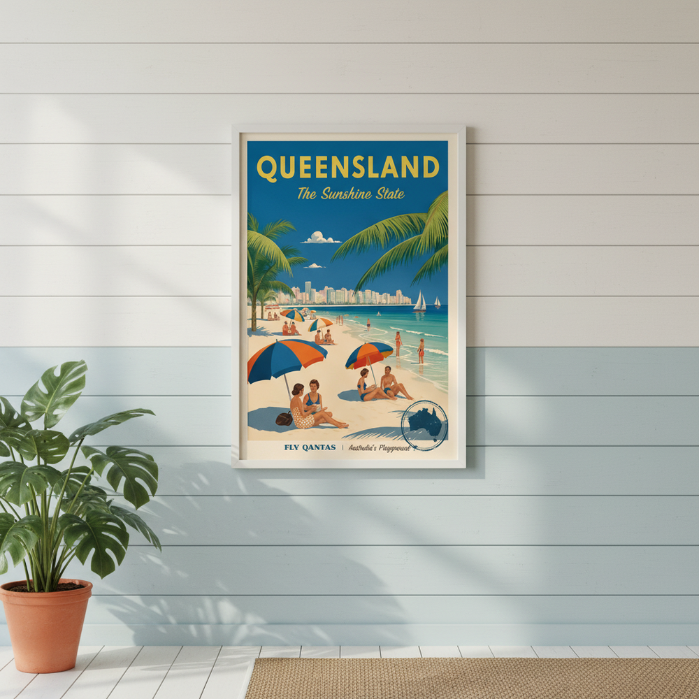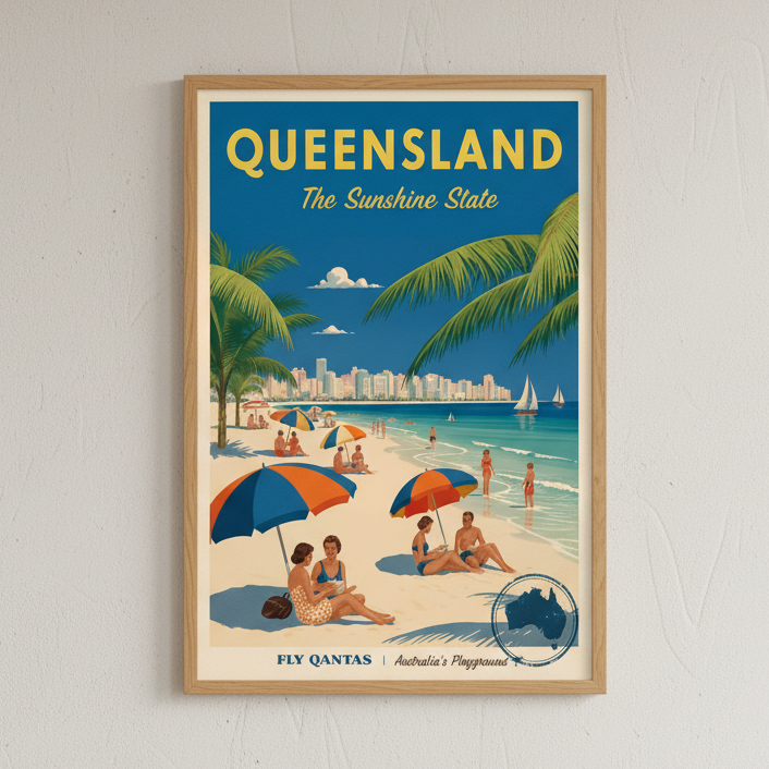 Queensland Sunshine State Vintage Retro Poster Wall Art